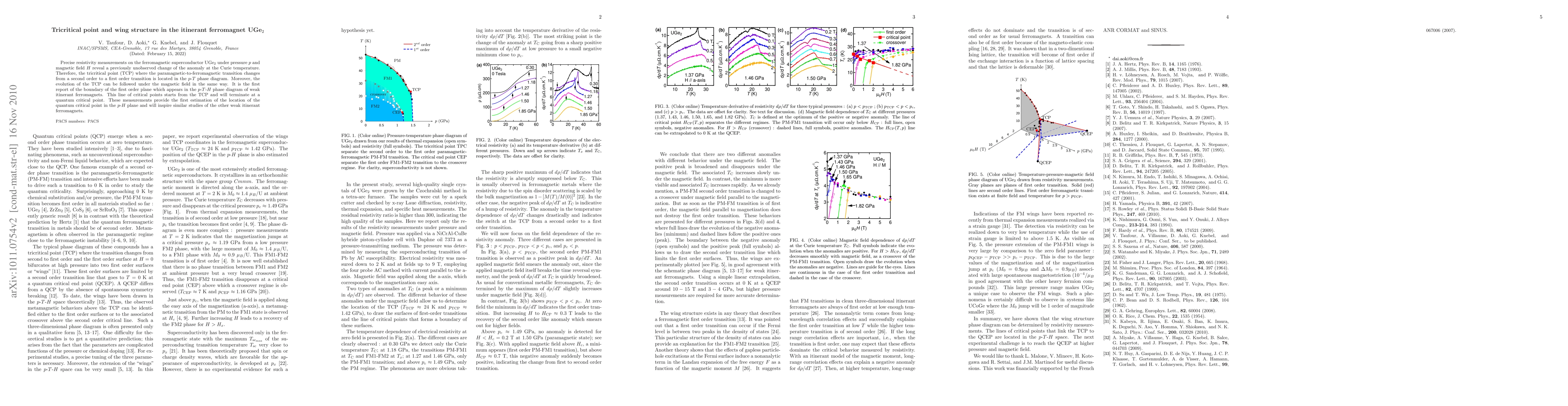 This study identifies a tricritical point in UGe2, marking the transition from a second to a first-order ferromagnetic transition under pressure and magnetic field. It also reveals the first-order transition boundary in the pressure-temperature-magnetic field phase diagram, providing an initial estimate for the quantum critical point in the pressure-magnetic field plane.