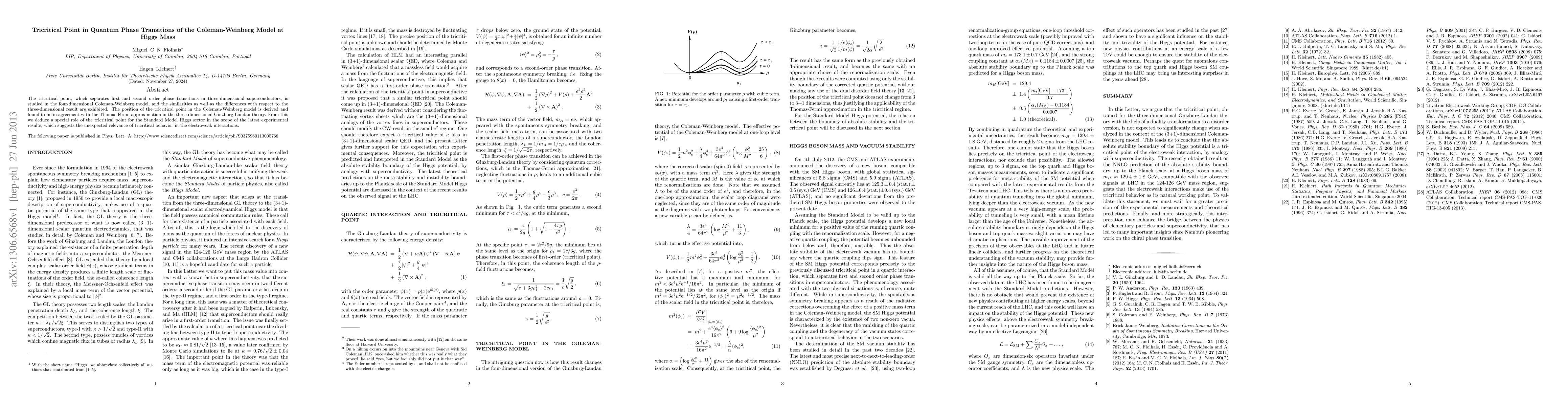 This paper investigates the tricritical point in the four-dimensional Coleman-Weinberg model, showing its relevance to first and second order phase transitions, and demonstrates its agreement with the Thomas-Fermi approximation. It highlights the unexpected significance of tricritical behavior for the Standard Model Higgs sector, especially in light of recent experimental findings.