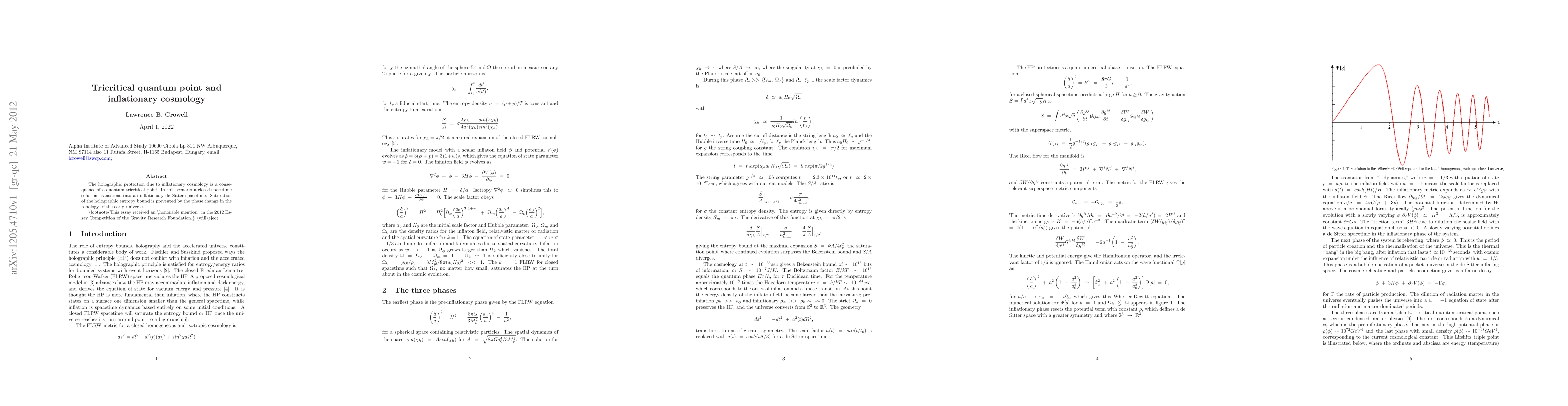 The holographic protection due to inflationary cosmology is a conse- quence of a quantum tricritical point. In this scenario a closed spacetime solution transitions into an inflationary de Sitter spacetime. Saturation of the holographic entropy bound is prevented by the phase change in the topology of the early universe.