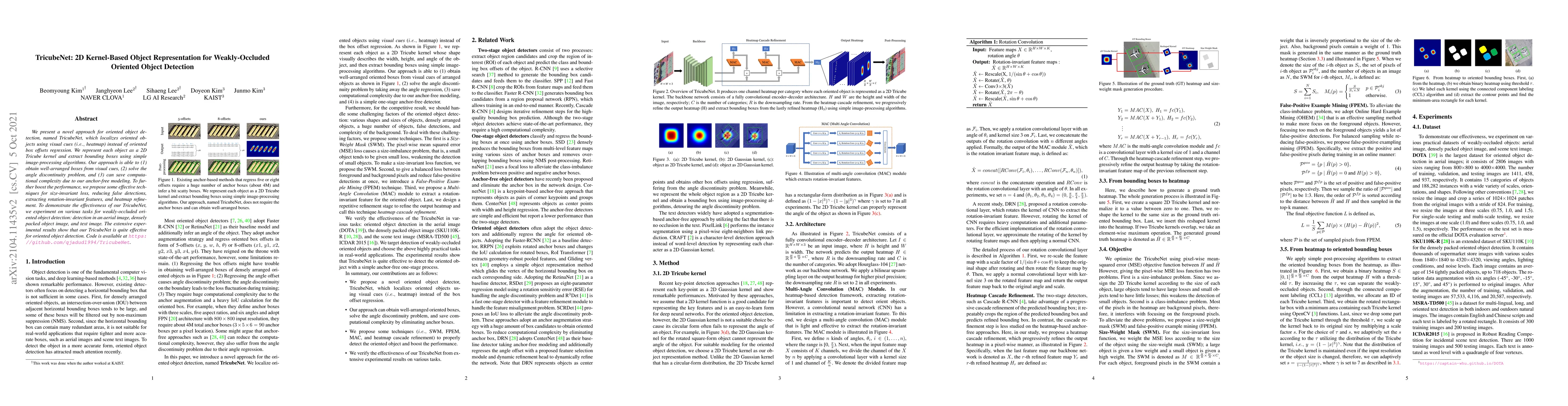 TricubeNet introduces a novel 2D kernel-based method for oriented object detection using visual cues and heatmaps, avoiding box offset regression. It leverages Tricube kernels for object representation and demonstrates improved performance in weakly-occluded scenarios.