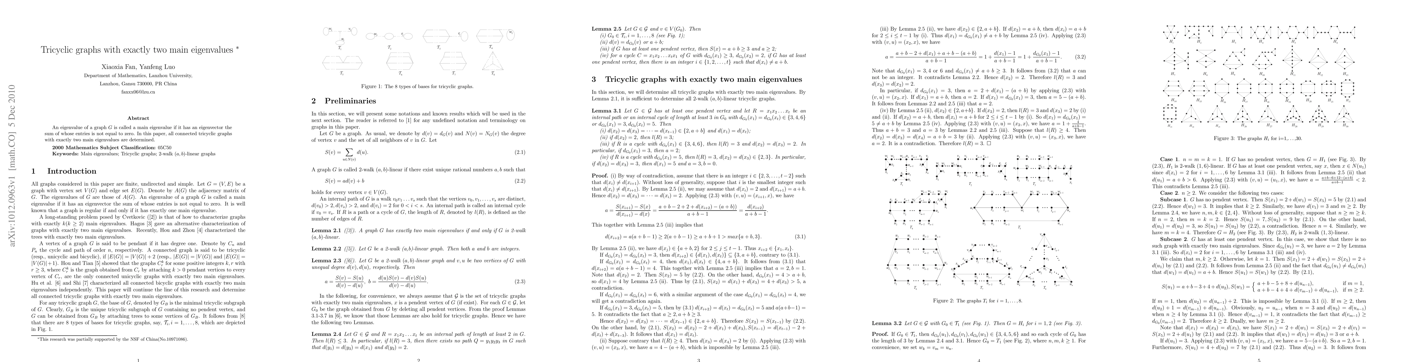 Summary: This paper identifies all connected tricyclic graphs that possess exactly two main eigenvalues, where a main eigenvalue is defined as one having a non-zero sum eigenvector. The study provides a comprehensive classification of such graphs.