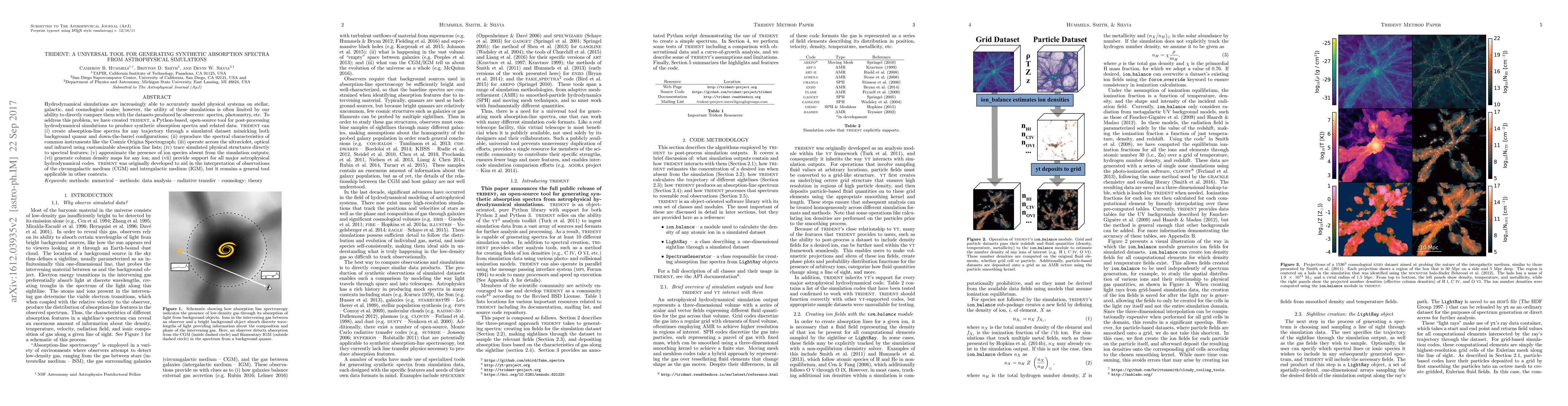Hydrodynamical simulations are increasingly able to accurately model physical systems on stellar, galactic, and cosmological scales, however, the utility of these simulations is often limited by our ability to directly compare them with the datasets produced by observers: spectra, photometry, etc. To address this problem, we have created Trident}, a Python-based, open-source tool for post-processing hydrodynamical simulations to produce synthetic absorption spectra and related data. Trident} can (i) create absorption-line spectra for any trajectory through a simulated dataset mimicking both background quasar and down-the-barrel configurations, (ii) reproduce the spectral characteristics of common instruments like the Cosmic Origins Spectrograph, (iii) operate across the ultraviolet, optical and infrared using customizable absorption line lists, (iv) trace simulated physical structures directly to spectral features, (v) approximate the presence of ion species absent from the simulation outputs, (vi) generate column density maps for any ion, and (vii) provide support for all major astrophysical hydrodynamical codes. The focus of Trident's development is for using simulated datasets to better interpret observations of the circumgalactic medium (CGM) and intergalactic medium (IGM), but it remains a general tool applicable in other contexts.