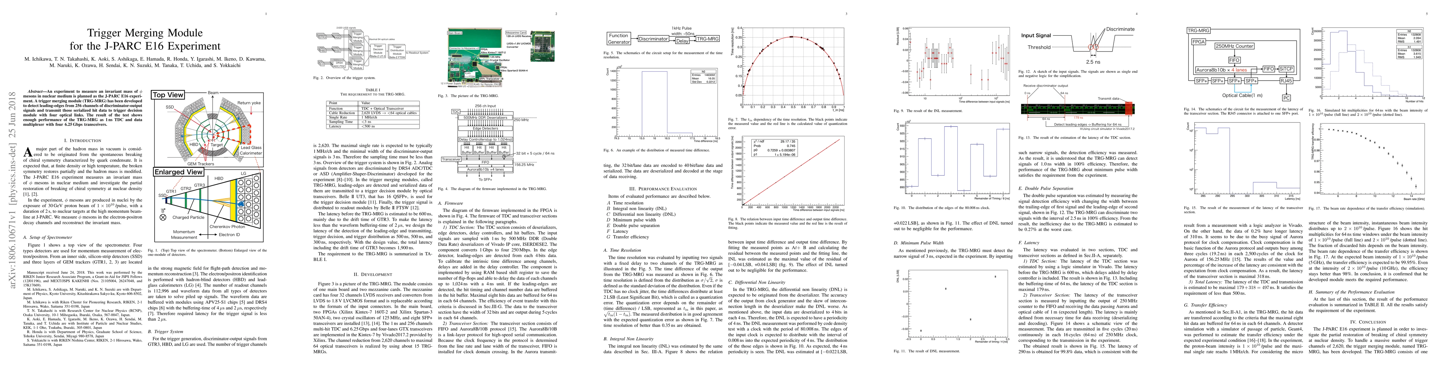 Researchers developed a trigger merging module to detect and transmit data from 256 channels of discriminator-output signals in high-speed nuclear experiments. The TRG-MRG showed satisfactory performance, transmitting data at speeds of up to 6.25 Gbps.