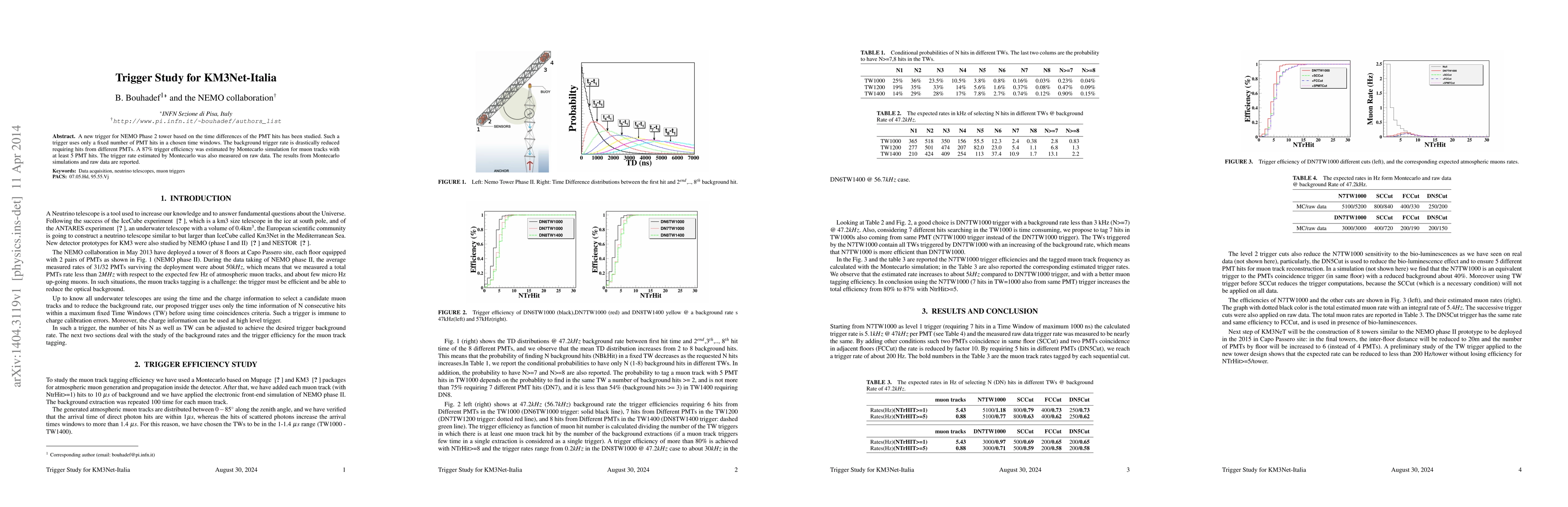 A new trigger for NEMO Phase 2 tower based on the time differences of the PMT hits has been studied. Such a trigger uses only a fixed number of PMT hits in a chosen time windows. The background trigger rate is drastically reduced requiring hits from different PMTs. A 87% trigger efficiency was estimated by Montecarlo simulation for muon tracks with at least 5 PMT hits. The trigger rate estimated by Montecarlo was also measured on raw data. The results from Montecarlo simulations and raw data are reported.