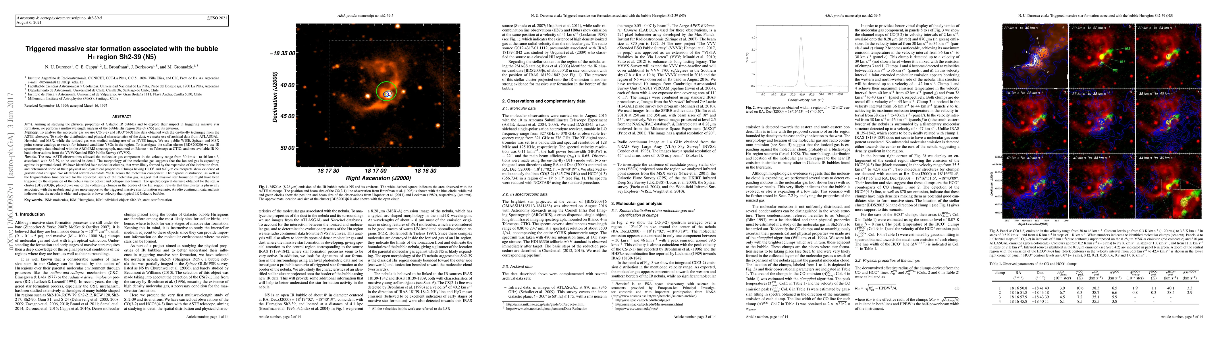 The study of HII region Sh2-39 (N5) reveals massive star formation triggered by the bubble's expansion. Using ASTE telescope and archival data from various sources, four collapsing molecular clumps were identified, suggesting gravitational collapse and candidate young stellar objects. Spectroscopic analysis confirmed the association of a stellar cluster with one collapsing clump, supporting the triggered star formation theory. The nebula is found to be older and expand at lower velocity than typical Galactic IR bubbles.