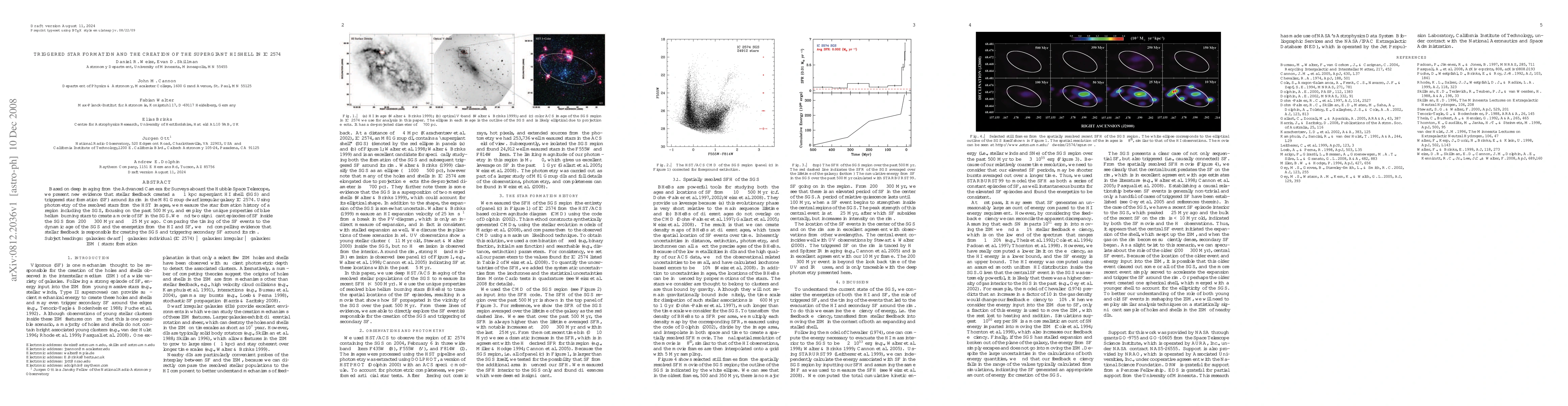 Stellar feedback triggered star formation in a 1kpc supergiant HI shell in IC 2574, creating two significant episodes of SF over the past 500 Myr.