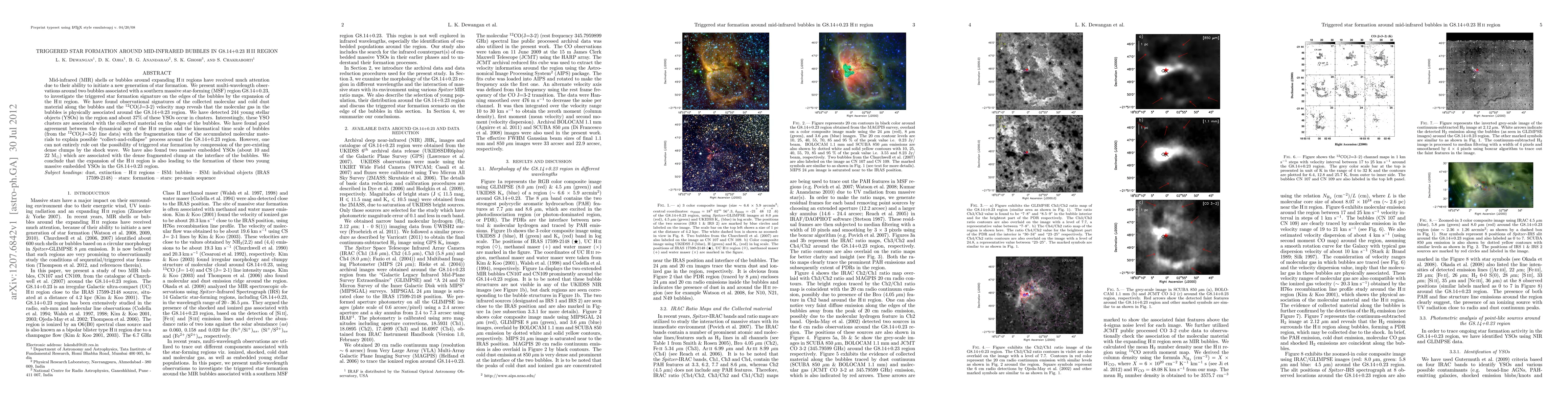 This research investigates triggered star formation around mid-infrared bubbles in the G8.14+0.23 H II region, finding evidence of molecular gas accumulation and the formation of young stellar objects (YSOs) in clusters along the bubble edges, suggesting a "collect-and-collapse" process. Additionally, it identifies two massive embedded YSOs likely formed by the expansion of the H II region.