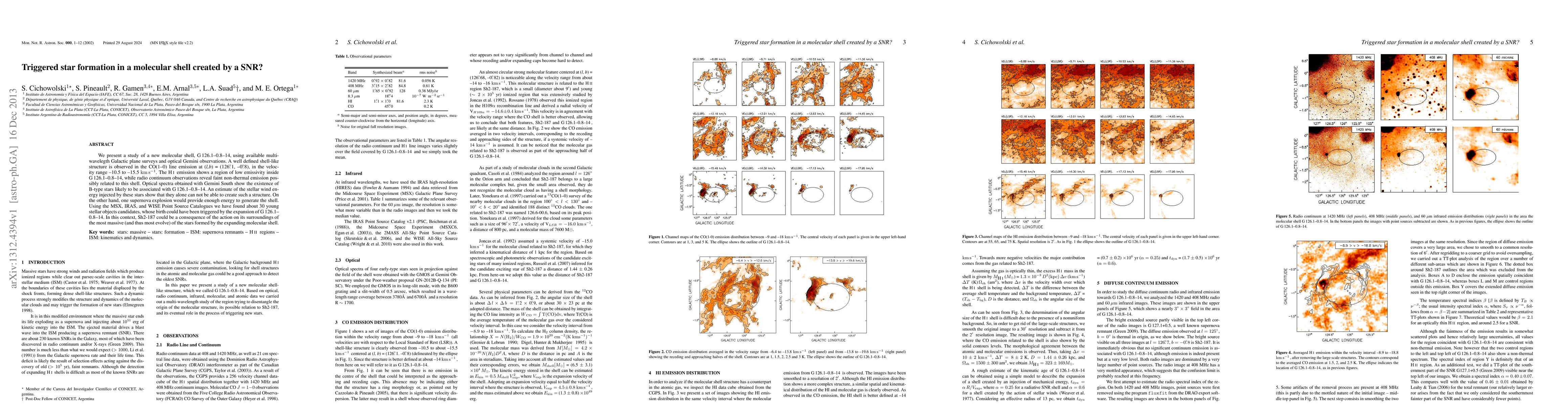 We present a study of a new molecular shell, G126.1-0.8-14, using available multiwavelegth Galactic plane surveys and optical Gemini observations. A well defined shell-like structure is observed in the CO(1--0) line emission at (l,b) = (126.1, -0.8), in the velocity range --10.5 to --15.5 km/s. The HI, emission shows a region of low emissivity inside G126.1-0.8-14, while radio continuum observations reveal faint non-thermal emission possibly related to this shell. Optical spectra obtained with Gemini South show the existence of B-type stars likely to be associated with G126.1-0.8-14. An estimate of the stellar wind energy injected by these stars show that they alone can not be able to create such a structure. On the other hand, one supernova explosion would provide enough energy to generate the shell. Using the MSX, IRAS, and WISE Point Source Catalogues we have found about 30 young stellar objects candidates, whose birth could have been triggered by the expansion of G126.1-0.8-14. In this context, Sh2-187 could be a consequence of the action on its surroundings of the most massive (and thus most evolve) of the stars formed by the expanding molecular shell.
