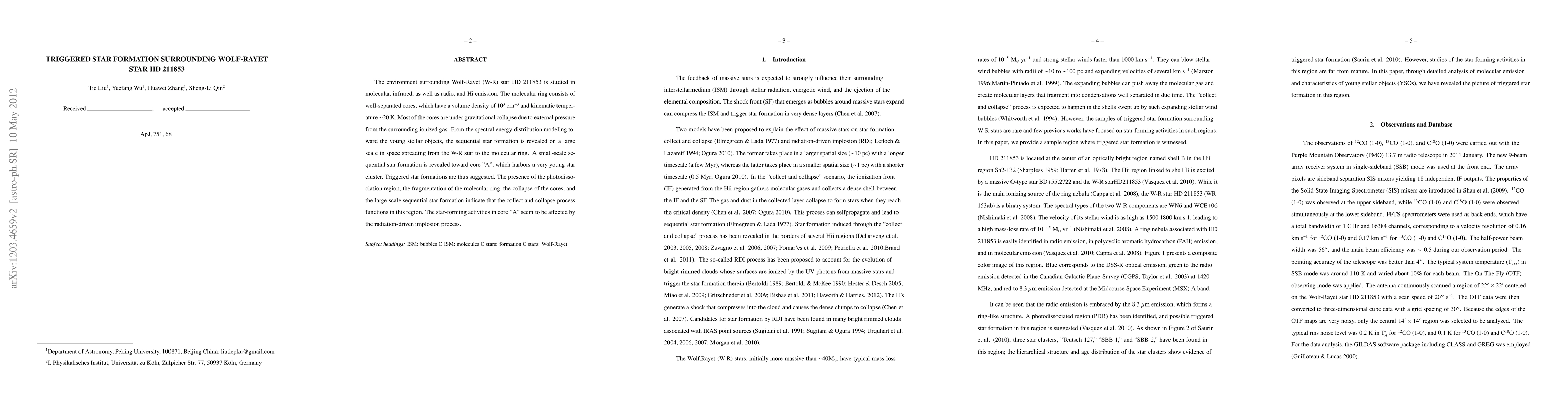 This study investigates the star formation surrounding Wolf-Rayet star HD 211853, revealing triggered star formation via gravitational collapse of molecular cores under external pressure from ionized gas. The "Collect and Collapse" process and "Radiation-Driven Implosion" are identified as key mechanisms driving star formation on both large and small scales.
