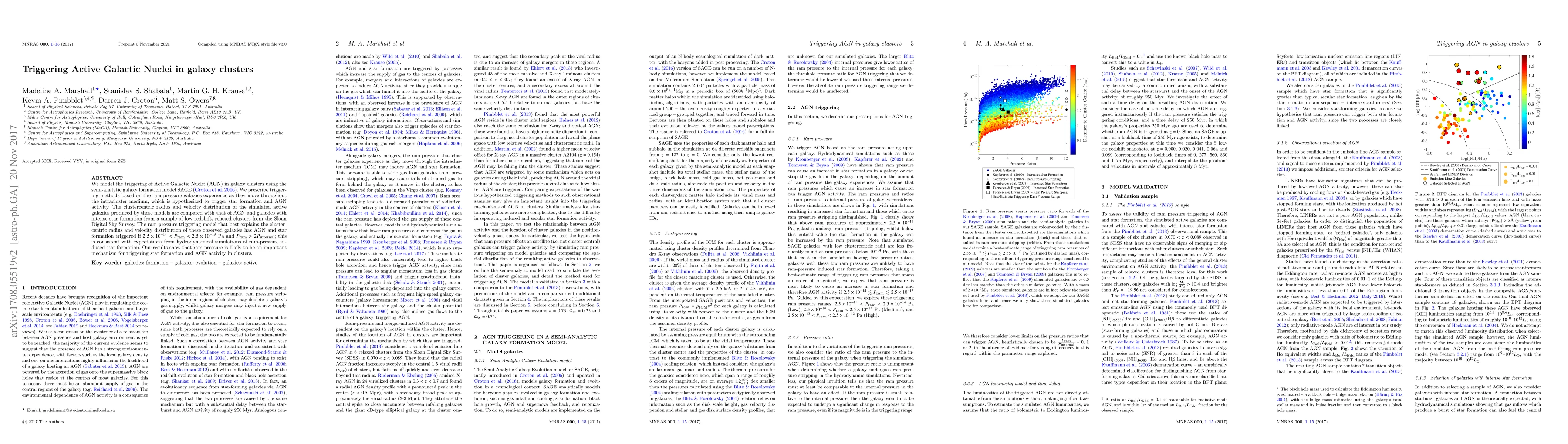 This study uses the SAGE semi-analytic galaxy formation model to investigate the triggering of Active Galactic Nuclei (AGN) in galaxy clusters, attributing it to ram pressure experienced by galaxies in the intracluster medium. The findings suggest that AGN and star formation are most likely triggered when the ram pressure falls within a specific range, consistent with hydrodynamical simulations.