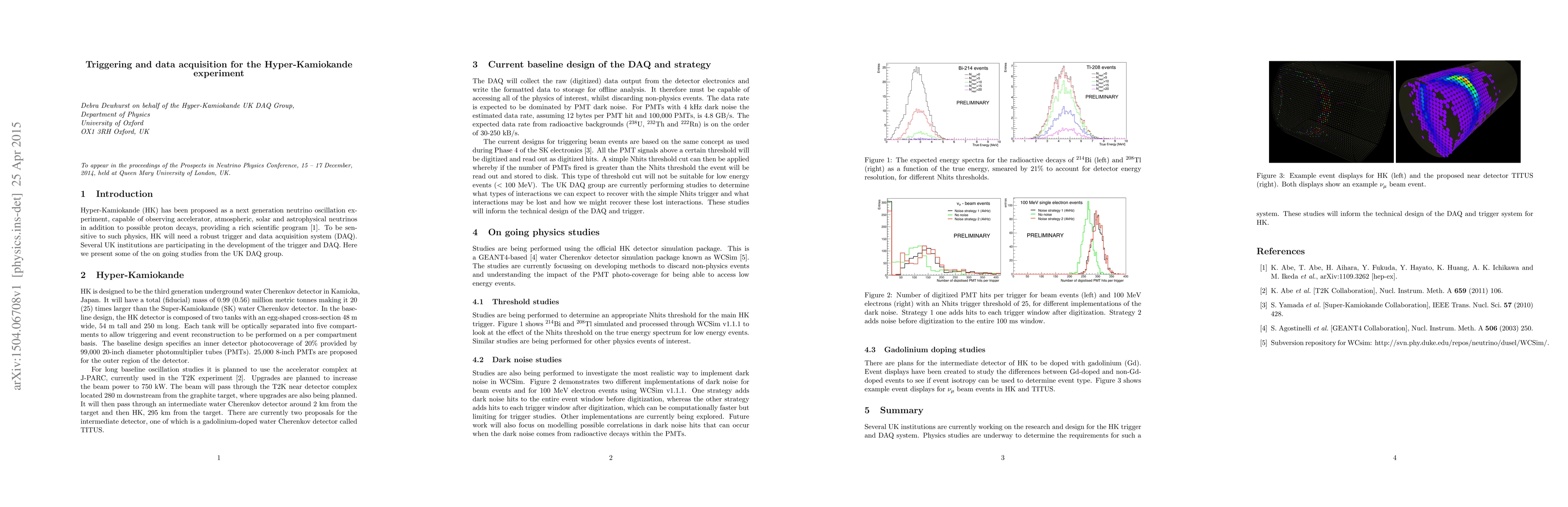 The Hyper-Kamiokande experiment aims to observe various neutrino types and study CP violation using a large underground water Cherenkov detector. The UK DAQ group is involved in developing a robust trigger and data acquisition system to handle the detector's significant fiducial mass.