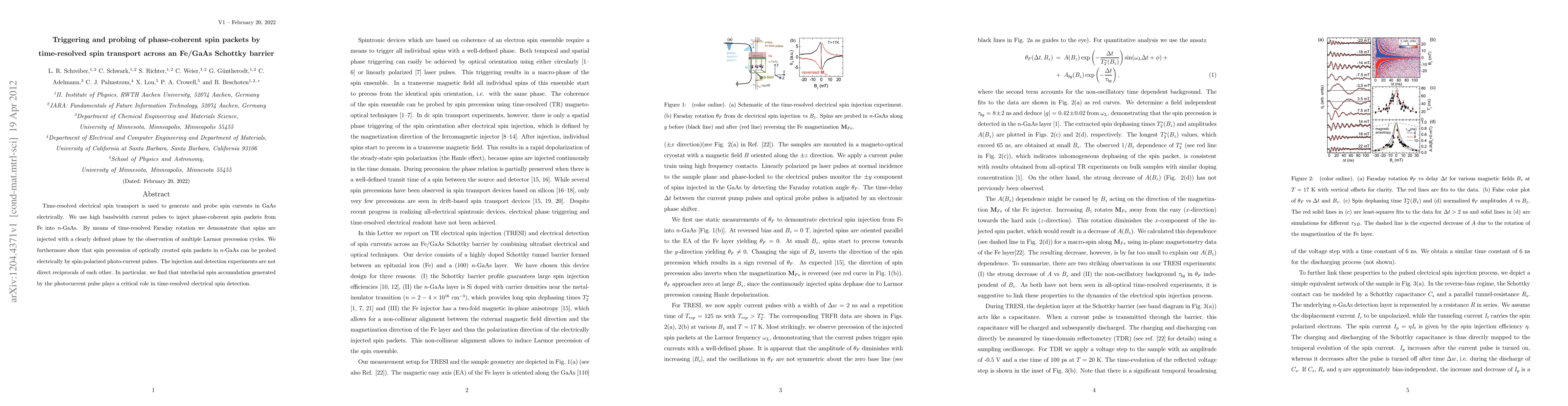 This paper investigates the generation and probing of phase-coherent spin packets using time-resolved electrical spin transport across an Fe/GaAs Schottky barrier. High-bandwidth pulses inject spin currents into n-GaAs, and time-resolved Faraday rotation reveals multiple Larmor precession cycles, indicating phase-coherent spin injection.