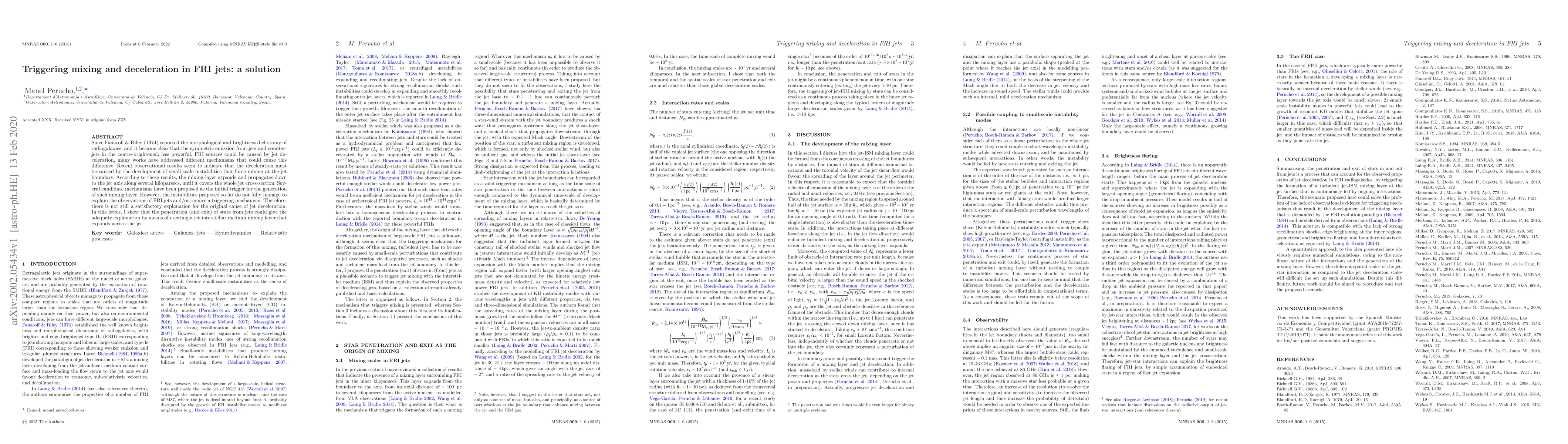 This paper proposes that the deceleration and mixing in FRI jets are caused by the penetration and exit of stars, which generate a mixing layer that expands across the jet, providing a satisfactory explanation for the observed jet behavior. Previous mechanisms have failed to fully account for the observed deceleration and mixing in FRI jets.