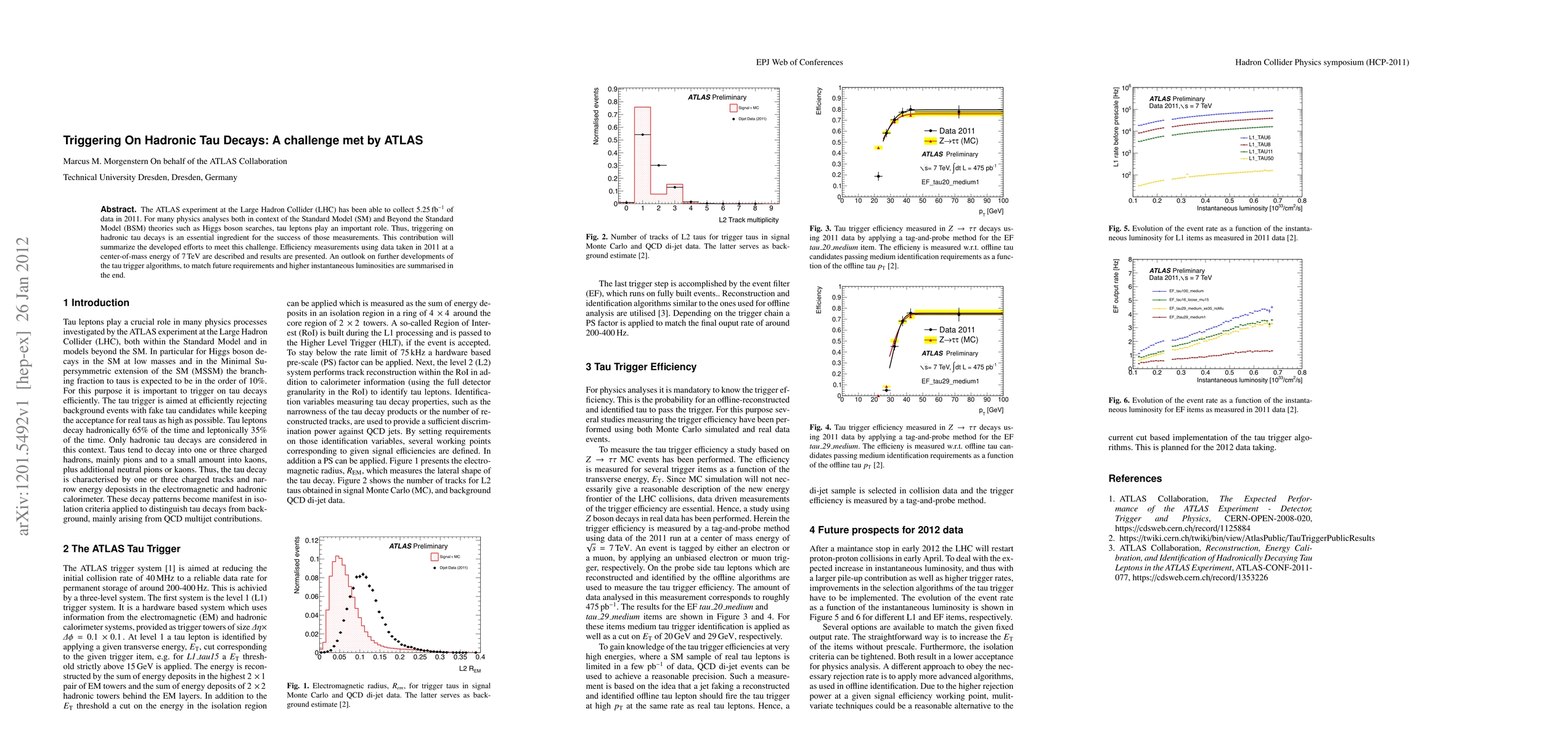 ATLAS experiment has developed a system to efficiently trigger on hadronic tau decays for Higgs boson searches and other physics analyses, with results from 2011 data showing high efficiency measurements. The findings outline the success of this effort and provide an outlook for future developments to match higher luminosities.