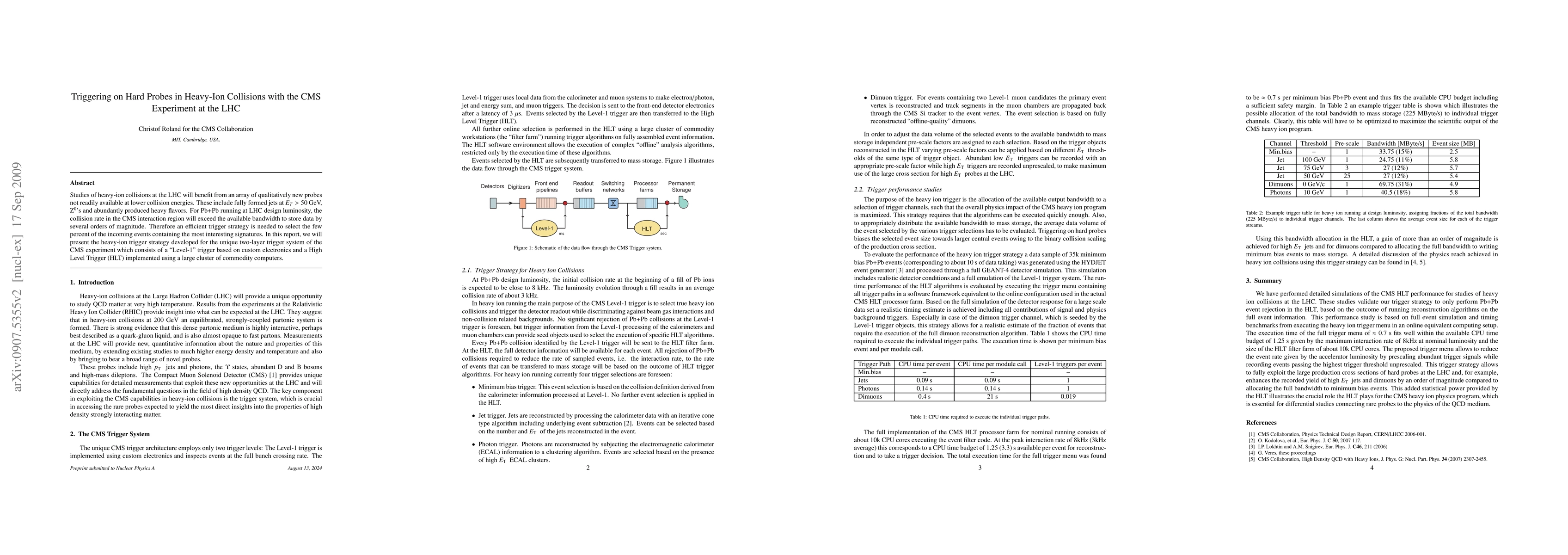 This paper discusses the trigger strategy for heavy-ion collisions at the LHC using the CMS experiment, focusing on selecting significant events amidst high collision rates. It details a two-layer trigger system comprising a fast Level-1 trigger and a High Level Trigger for efficient data selection.