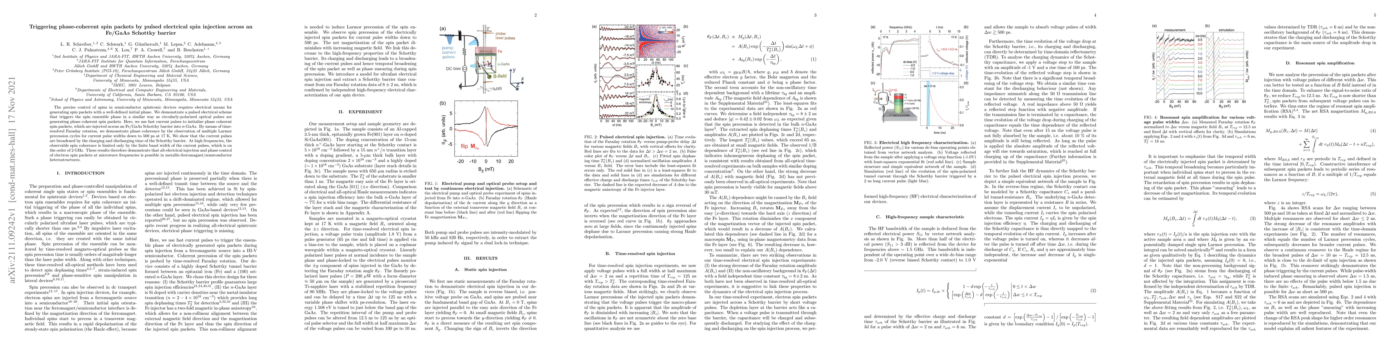 This paper demonstrates a method for generating phase-coherent spin packets using pulsed electrical injection across an Fe/GaAs Schottky barrier, achieving multiple Larmor precession cycles. The results show that all-electrical control of spin packets at microwave frequencies is feasible in metallic-ferromagnet/semiconductor heterostructures.