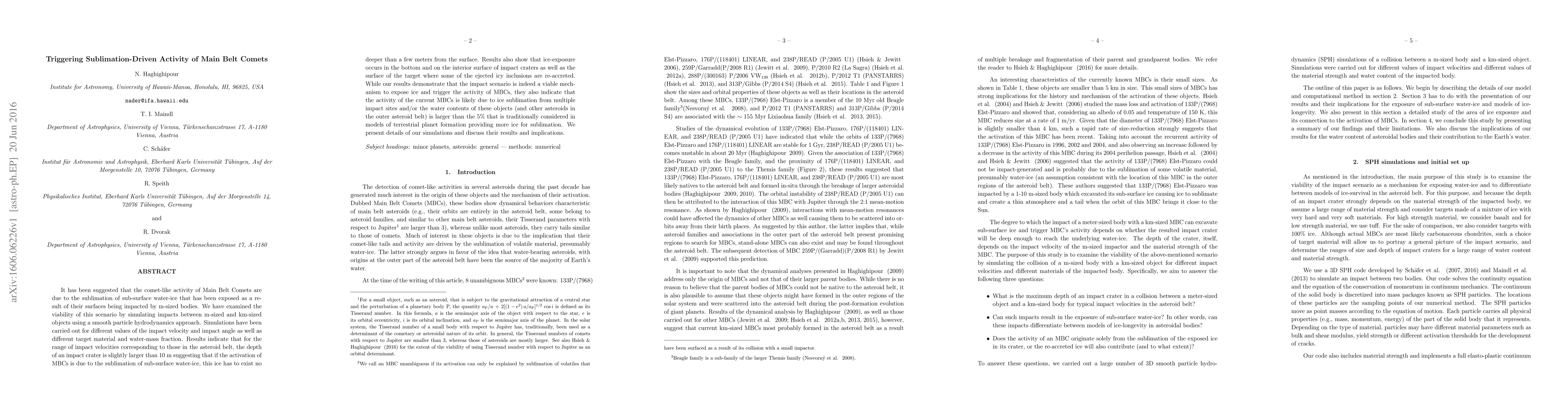 This study investigates the impact-induced sublimation of sub-surface water-ice as a driver of activity in Main Belt Comets (MBCs) using simulations of m-sized impacts on km-sized objects. Results suggest that ice must be within a few meters of the surface to trigger activity, and that multiple impact sites may be necessary to account for the observed activity.