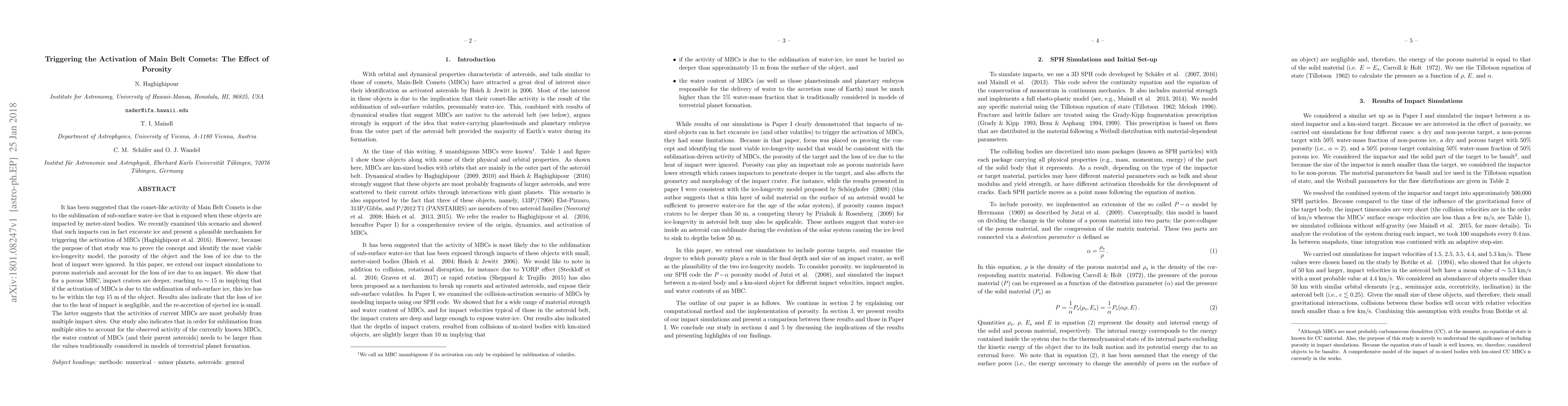 This paper investigates the impact of porosity on the activation of Main Belt Comets (MBCs) by simulating impacts on porous materials. It finds that deeper impact craters in porous MBCs suggest subsurface ice must be within the top 15 m, and that the loss of ice due to impact heat is negligible, implying current MBC activity likely stems from multiple impact sites.