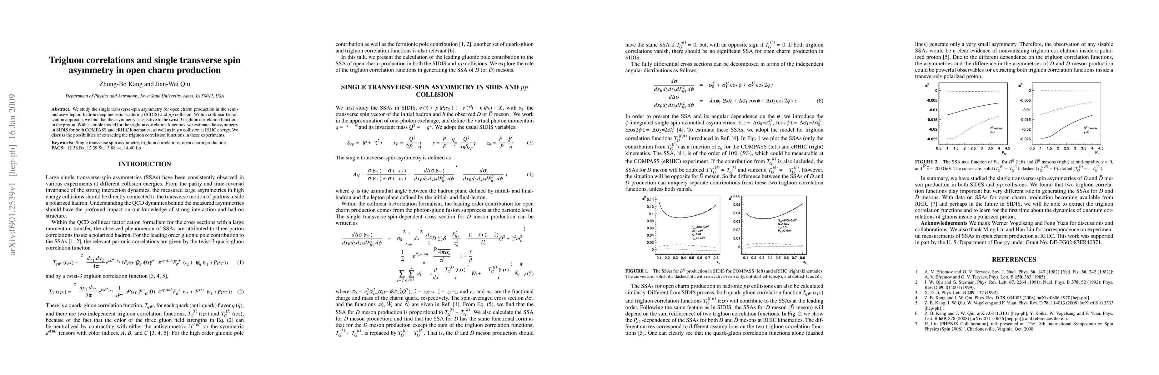 This paper investigates the single transverse-spin asymmetry in open charm production using a collinear factorization approach, revealing its dependence on twist-3 trigluon correlation functions in the proton. The study estimates the asymmetry in SIDIS and $pp$ collisions, discussing potential experimental methods to extract these correlation functions.