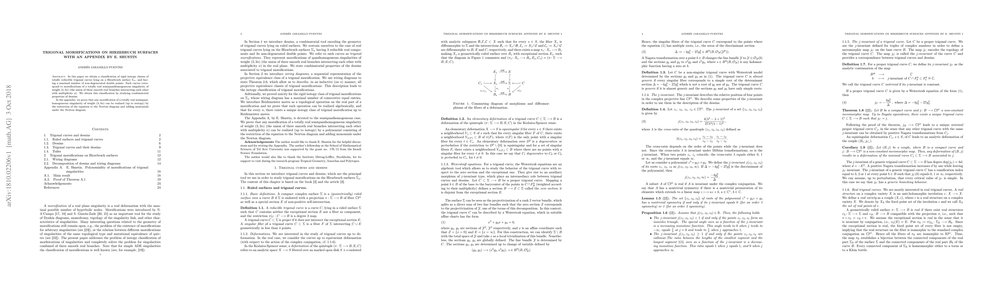 Researchers classify rigid isotopy classes of trigonal curves on Hirzebruch surfaces with specific properties, using combinatorial analysis of dessins to study their behavior. The findings relate to morsifications of singularities on these surfaces.