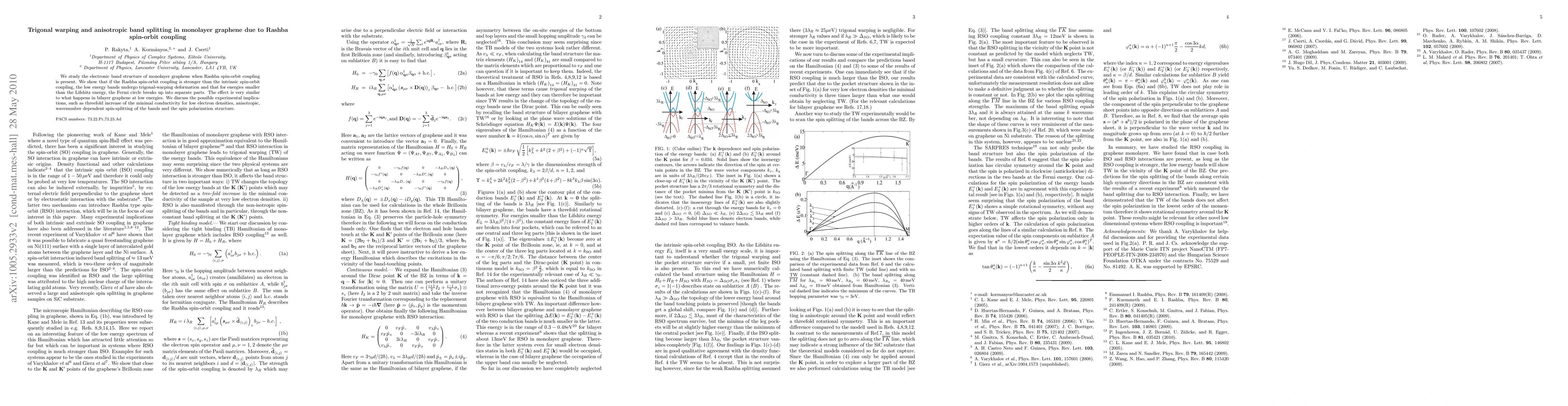This paper investigates how monolayer graphene's electronic band structure is altered by strong Rashba spin-orbit coupling, leading to trigonal warping and anisotropic band splitting. It predicts a threefold increase in minimal conductivity at low electron densities and aligns theoretical findings with recent experimental observations.