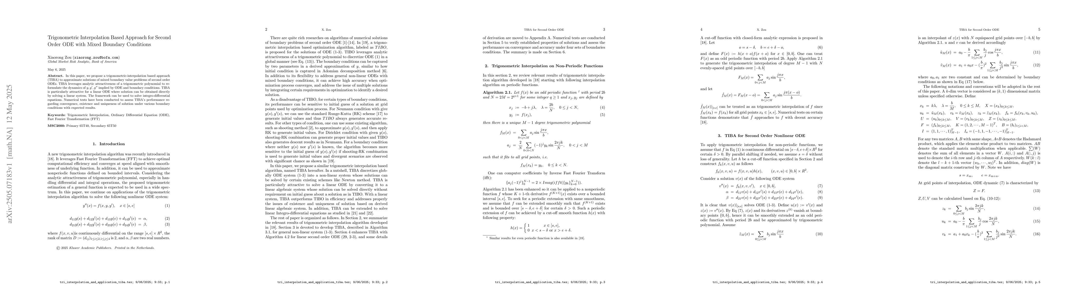 The primary technical contribution is the development and validation of the Trigonometric Interpolation-based Approach (TIBA) for second-order ODEs with mixed boundary conditions.