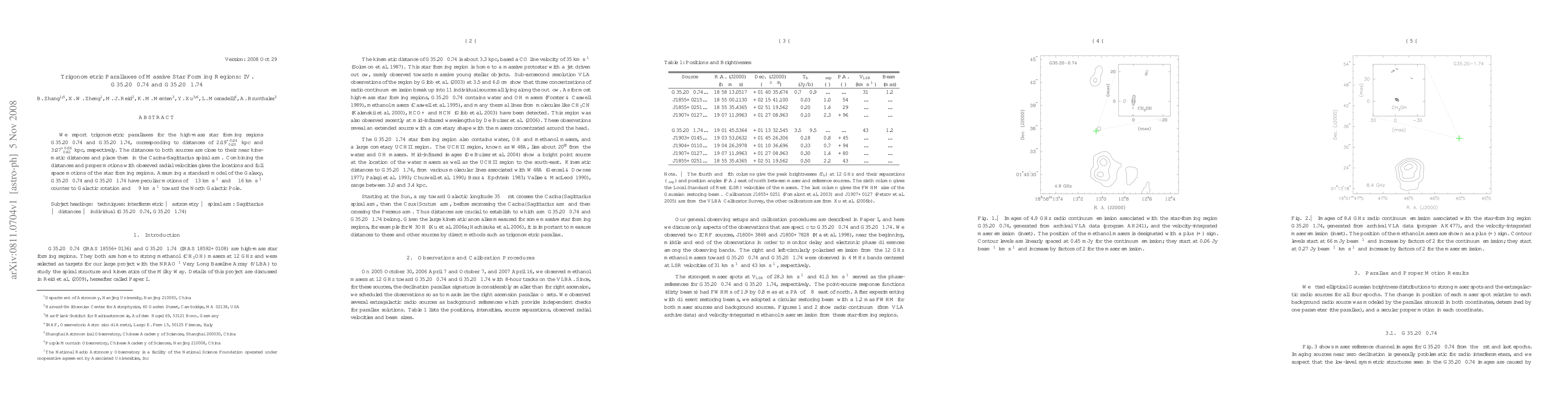 The research utilized trigonometric parallax measurements from East-West data to determine distances to high-mass star-forming regions G35.20-0.74 and G35.20-1.74, combining these with proper motions and radial velocities to ascertain their space motions.