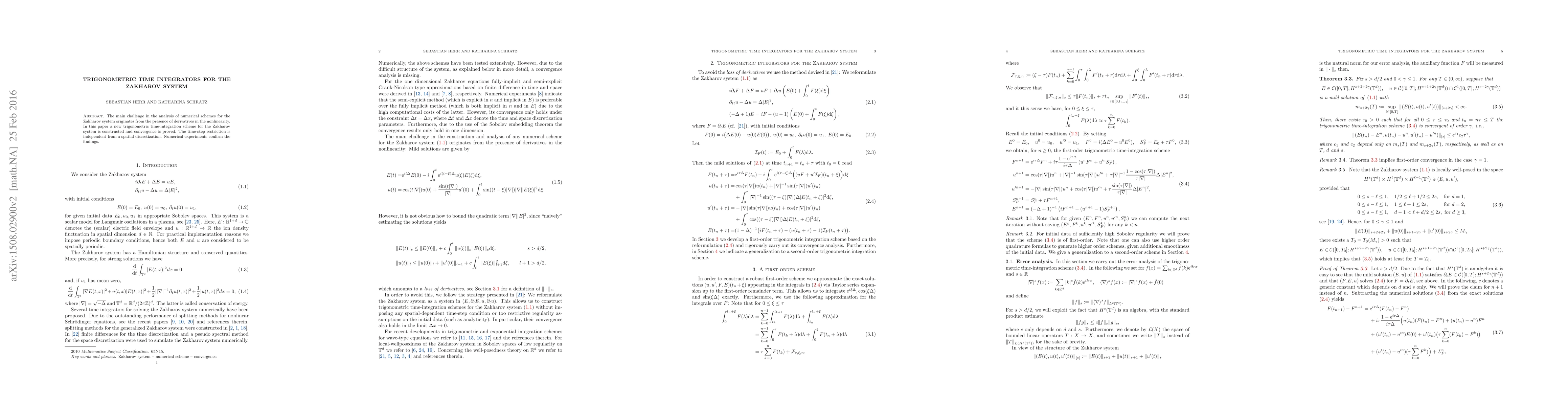 The main challenge in the analysis of numerical schemes for the Zakharov system originates from the presence of derivatives in the nonlinearity. In this paper a new trigonometric time-integration scheme for the Zakharov system is constructed and convergence is proved. The time-step restriction is independent from a spatial discretization. Numerical experiments confirm the findings.