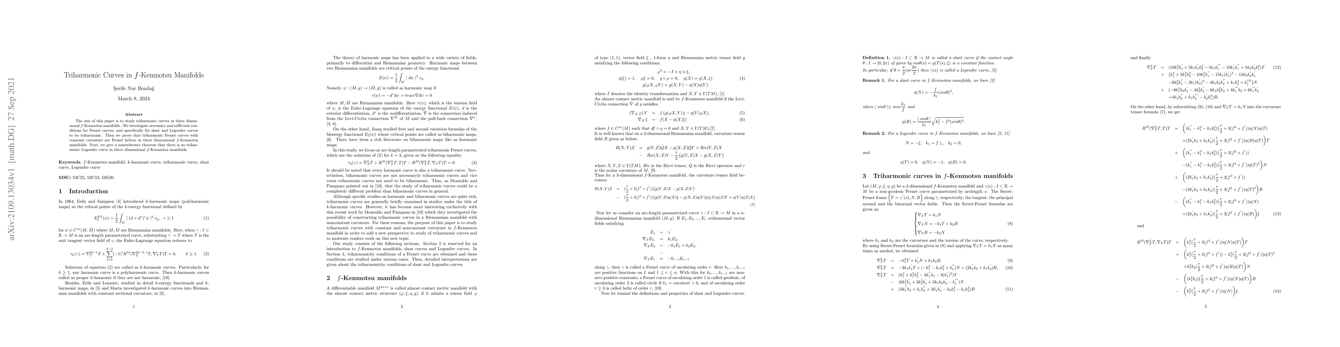 This paper explores triharmonic curves within three-dimensional f-Kenmotsu manifolds, establishing conditions for Frenet curves, including slant and Legendre curves, to be triharmonic. It concludes with a proof that triharmonic Frenet curves with constant curvature are Frenet helices and a theorem proving the nonexistence of triharmonic Legendre curves in such manifolds.