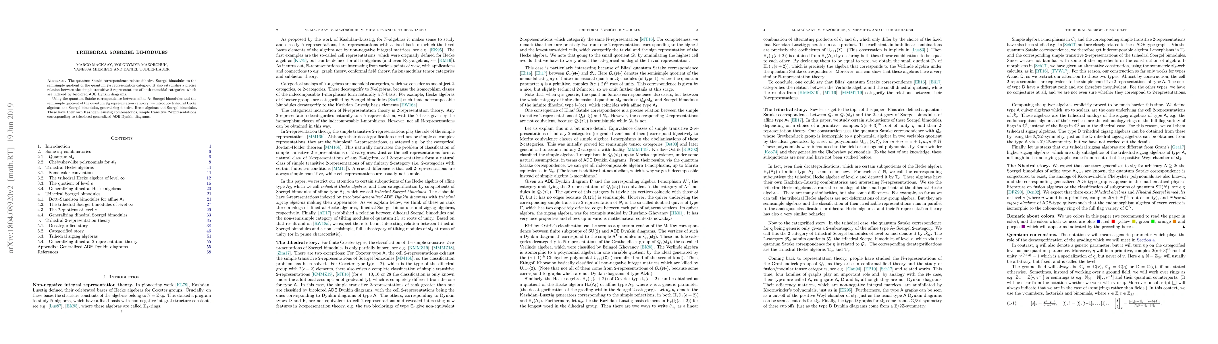 This research extends existing work on dihedral Soergel bimodules by generalizing to trihedral settings, introducing new combinatorial structures and a quantum Satake correspondence that captures the essence of categorification in higher dimensions.