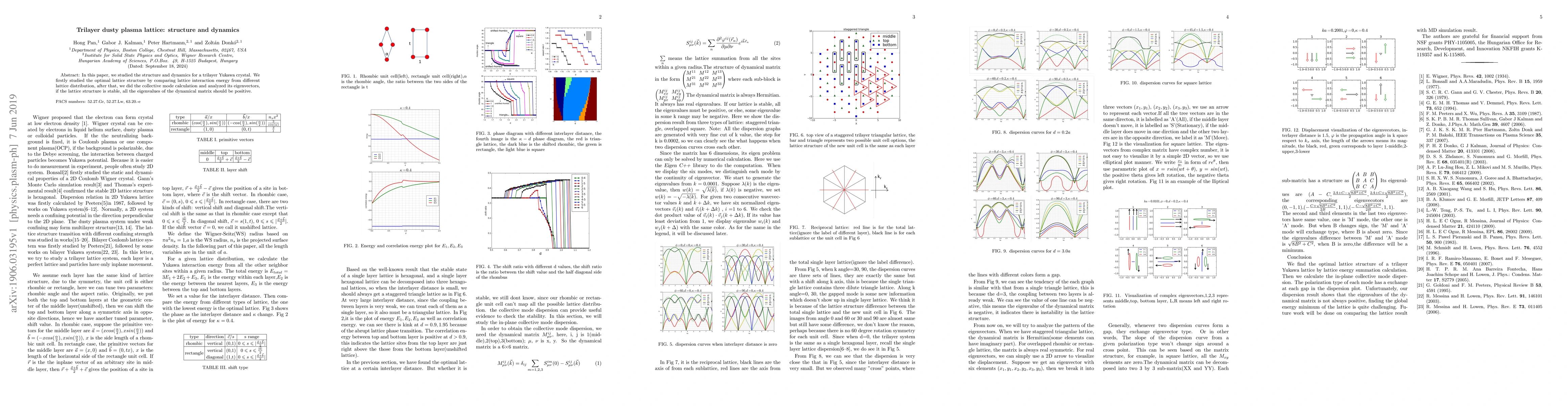In this paper, we studied the structure and dynamics for a trilayer Yukawa crystal. We firstly studied the optimal lattice structure by comparing lattice interaction energy from different lattice distribution, after that, we did the collective mode calculation and analyzed its eigenvectors, if the lattice structure is stable, all the eigenvalues of the dynamical matrix should be positive.