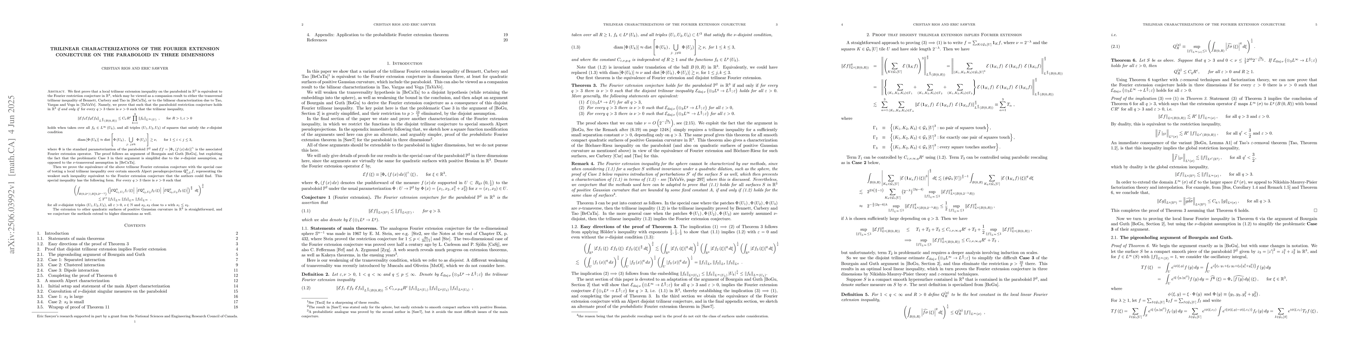 Researchers prove a local trilinear extension inequality is equivalent to the Fourier restriction conjecture on three-dimensional paraboloid, offering new insights into a long-standing problem in mathematics.