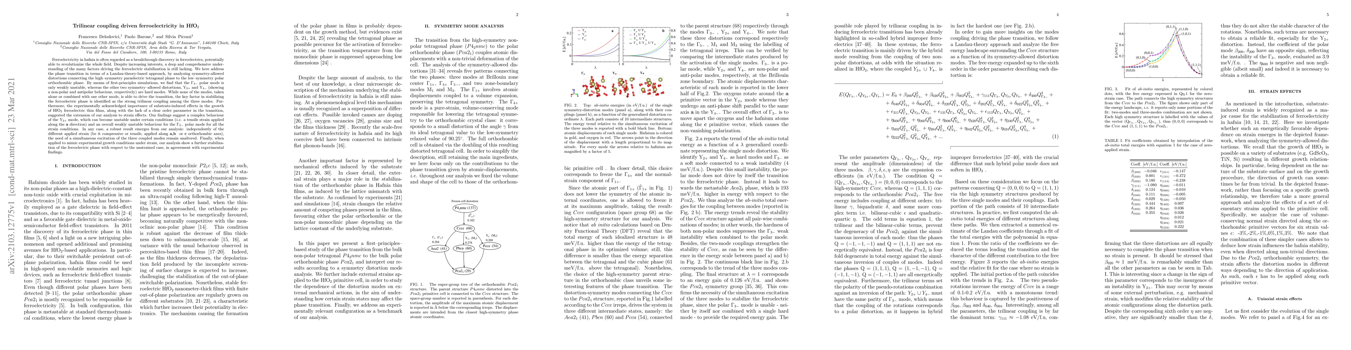 Researchers investigated trilinear coupling in hafnia to understand ferroelectricity, finding that simultaneous excitation of three coupled modes is necessary for stabilization, regardless of applied strain, which agrees with experimental findings.