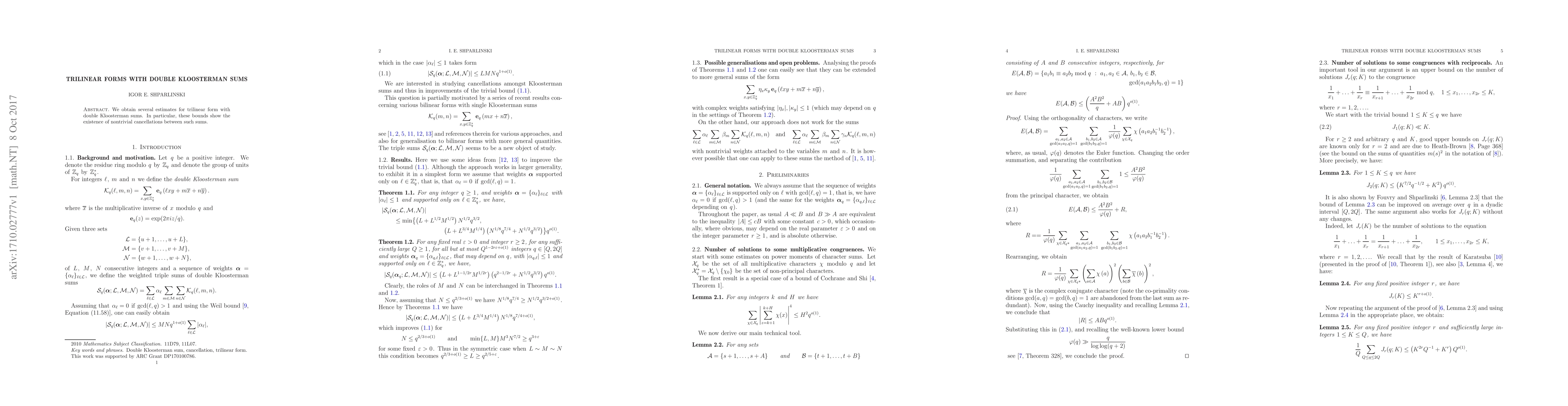 The paper provides new estimates for trilinear forms involving double Kloosterman sums, revealing significant nontrivial cancellations among these sums, which may have implications for number theory.