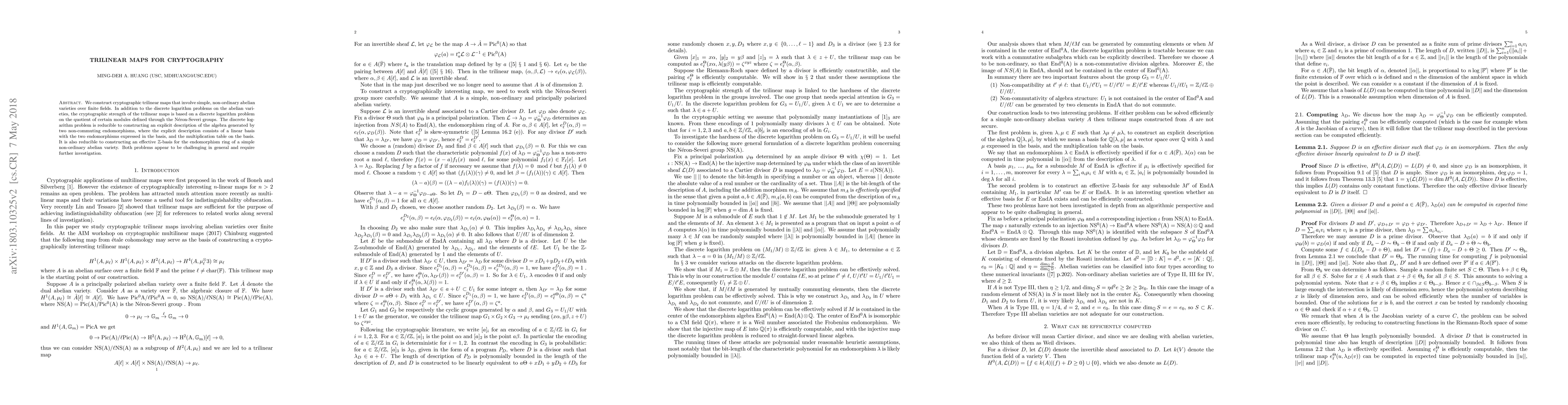The paper constructs cryptographic trilinear maps using simple, non-ordinary abelian varieties over finite fields, basing their cryptographic strength on discrete logarithm problems on abelian varieties and modules defined through Néron-Severi groups.