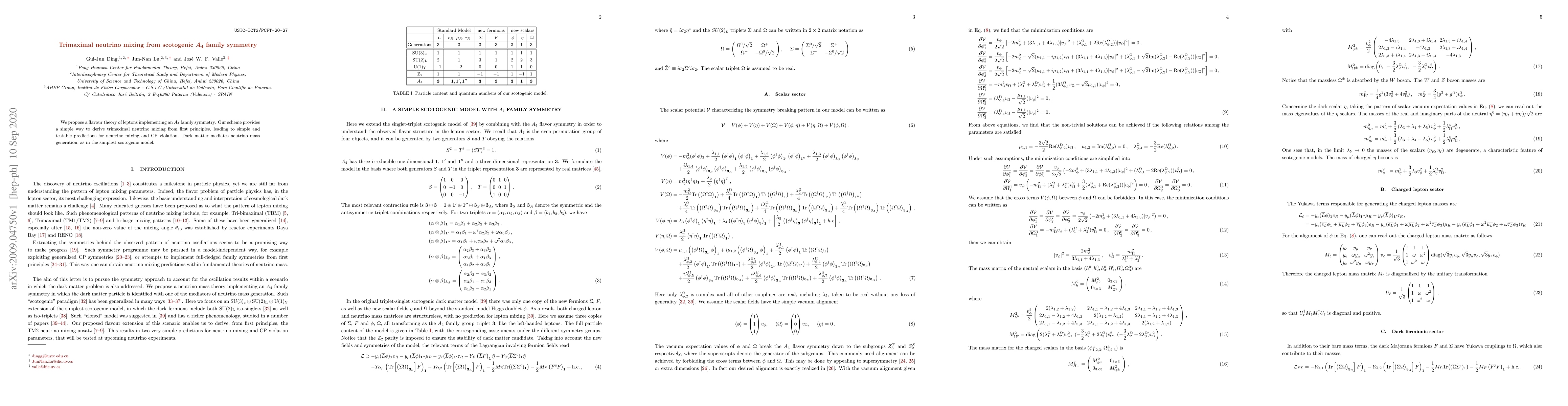 We propose a flavour theory of leptons implementing an $A_4$ family symmetry. Our scheme provides a simple way to derive trimaximal neutrino mixing from first principles, leading to simple and testable predictions for neutrino mixing and CP violation. Dark matter mediates neutrino mass generation, as in the simplest scotogenic model.
