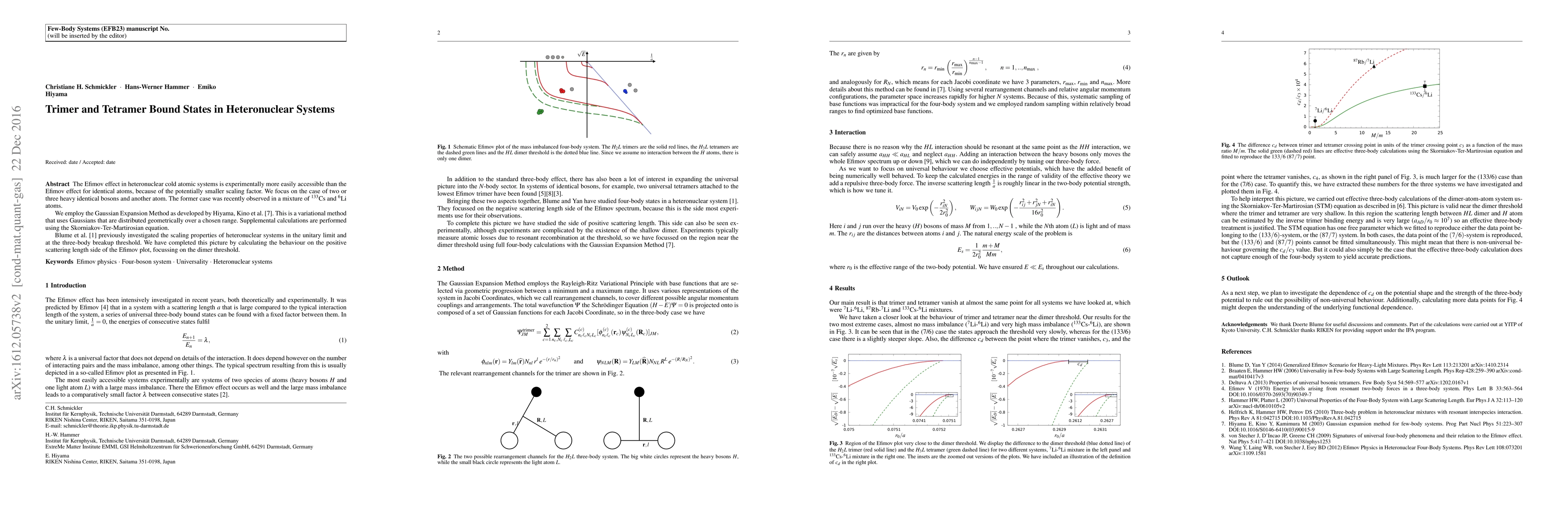 This paper investigates the Efimov effect in heteronuclear cold atomic systems, employing the Gaussian Expansion Method to study trimer and tetramer bound states. It completes previous work on scaling properties by examining the behavior on the positive scattering length side, focusing on the dimer threshold.