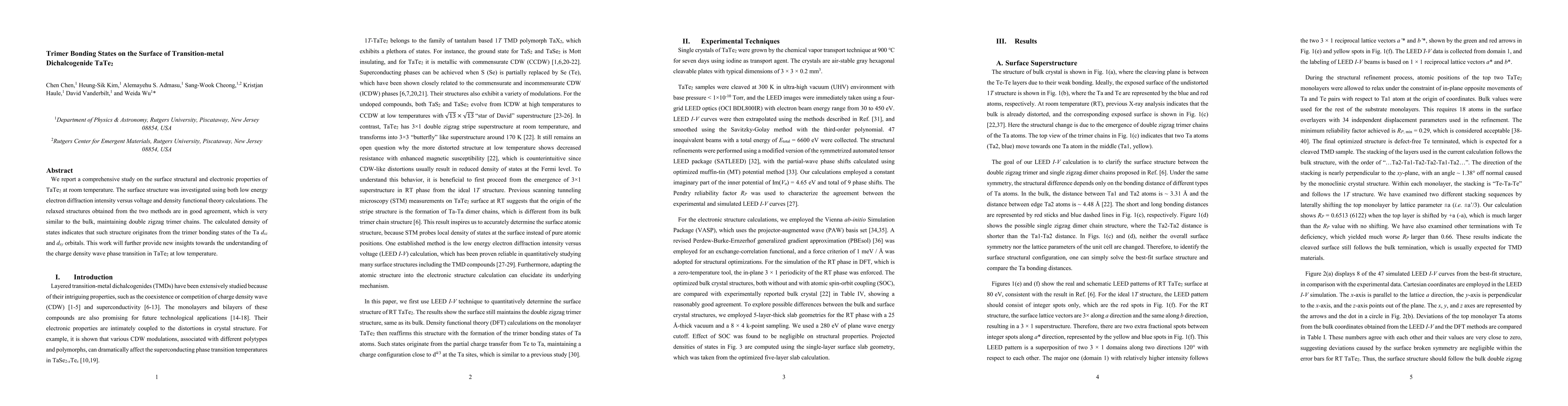 We report a comprehensive study on the surface structural and electronic properties of TaTe2 at room temperature. The surface structure was investigated using both low energy electron diffraction intensity versus voltage and density functional theory calculations. The relaxed structures obtained from the two methods are in good agreement, which is very similar to the bulk, maintaining double zigzag trimer chains. The calculated density of states indicates that such structure originates from the trimer bonding states of the Ta dxz and dxy orbitals. This work will further provide new insights towards the understanding of the charge density wave phase transition in TaTe2 at low temperature.