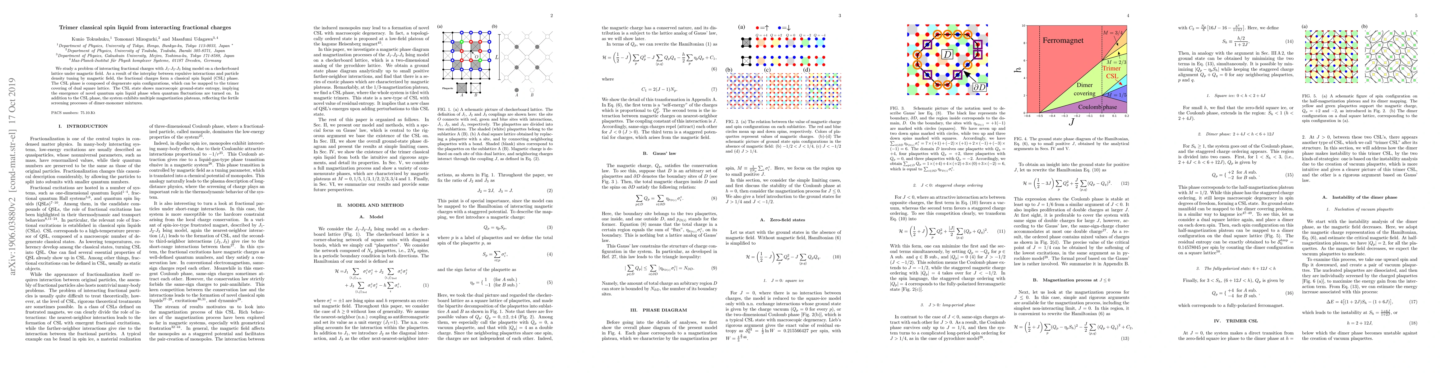 This research identifies a classical spin liquid (CSL) phase formed by interacting fractional charges on a checkerboard lattice under magnetic field, mapping to a trimer covering of a dual square lattice. The CSL phase exhibits ground-state entropy, suggesting a potential for novel quantum spin liquid behavior with quantum fluctuations, alongside multiple magnetization plateaus due to dimer-monomer mixture screening processes.