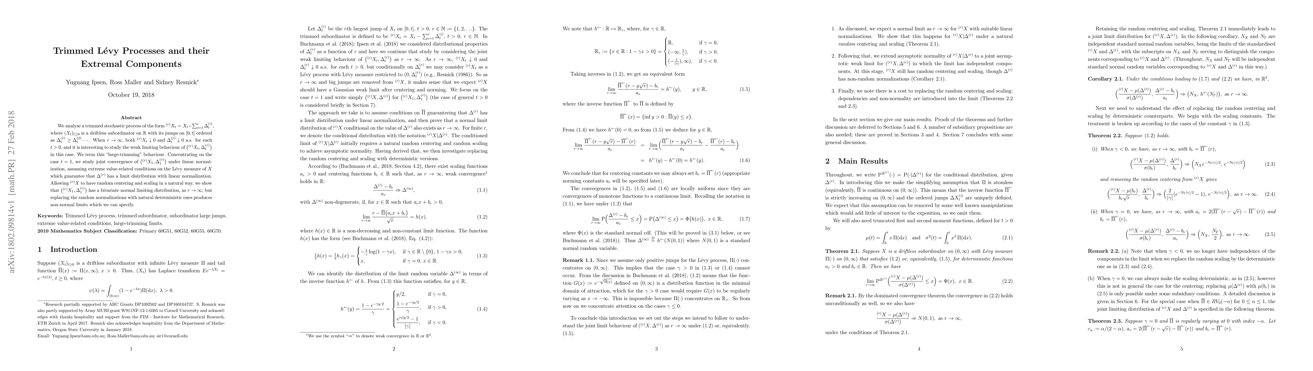 We analyse a trimmed stochastic process of the form ${}^{(r)}X_t= X_t - \sum_{i=1}^r \Delta_t^{(i)}$, where $(X_t)_{t \geq 0}$ is a driftless subordinator on $\mathbb{R}$ with its jumps on $[0,t]$ ordered as $ \Delta_t^{(1)}\ge \Delta_t^{(2)} \cdots$. When $r\to\infty$, both ${}^{(r)}X_t \to 0$ and $\Delta_t^{(r)} \to 0$ a.s. for each $t>0$, and it is interesting to study the weak limiting behaviour of $\bigl({}^{(r)}X_t, \Delta_t^{(r)}\bigr)$ in this case. We term this "large-trimming" behaviour. Concentrating on the case $t=1$, we study joint convergence of $\bigl({}^{(r)}X_1, \Delta_1^{(r)}\bigr)$ under linear normalization, assuming extreme value-related conditions on the L\'evy measure of $X$ which guarantee that $\Delta_1^{(r)}$ has a limit distribution with linear normalization. Allowing ${}^{(r)}X_1$ to have random centering and scaling in a natural way, we show that $\bigl({}^{(r)}X_1, \Delta_1^{(r)}\bigr)$ has a bivariate normal limiting distribution, as $r\to\infty$; but replacing the random normalizations with natural deterministic ones produces non-normal limits which we can specify.