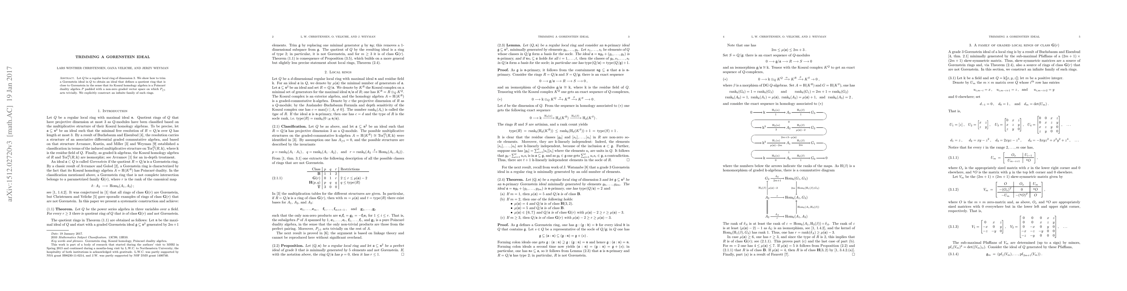 Let Q be a regular local ring of dimension 3. We show how to trim a Gorenstein ideal in Q to obtain an ideal that defines a quotient ring that is close to Gorenstein in the sense that its Koszul homology algebra is a Poincare duality algebra P padded with a non-zero graded vector space on which P_{\ge 1} acts trivially. We explicitly construct an infinite family of such rings.