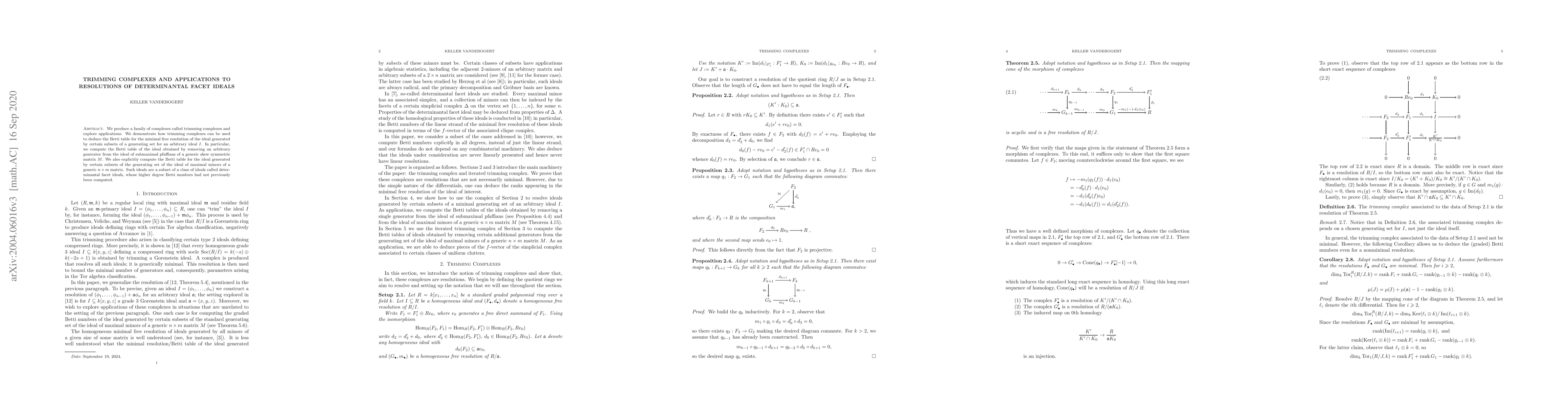 We produce a family of complexes called trimming complexes and explore applications. We study how trimming complexes can be used to deduce the Betti table for the minimal free resolution of the ideal generated by subsets of a generating set for an arbitrary ideal $I$. In particular, we compute the Betti table for removing an arbitrary generator from the ideal of submaximal pfaffians of a generic skew symmetric matrix $M$. We also explicitly compute the Betti table for the ideal generated by certain subsets of the generating set of the ideal of maximal minors of a generic $n \times m$ matrix. Such ideals are a subset of a class of ideals called determinantal facet ideals, whose higher degree Betti numbers had not previously been computed.