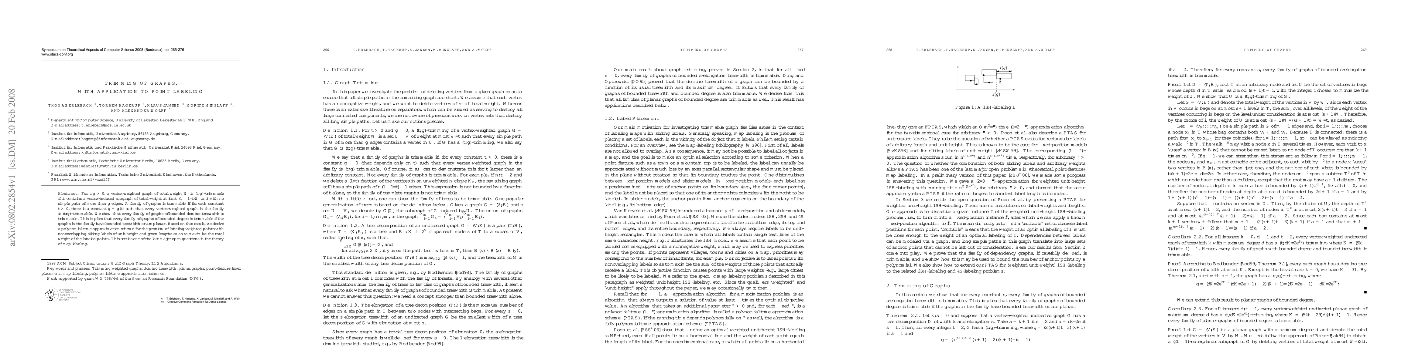 For $t,g>0$, a vertex-weighted graph of total weight $W$ is $(t,g)$-trimmable if it contains a vertex-induced subgraph of total weight at least $(1-1/t)W$ and with no simple path of more than $g$ edges. A family of graphs is trimmable if for each constant $t>0$, there is a constant $g=g(t)$ such that every vertex-weighted graph in the family is $(t,g)$-trimmable. We show that every family of graphs of bounded domino treewidth is trimmable. This implies that every family of graphs of bounded degree is trimmable if the graphs in the family have bounded treewidth or are planar. Based on this result, we derive a polynomial-time approximation scheme for the problem of labeling weighted points with nonoverlapping sliding labels of unit height and given lengths so as to maximize the total weight of the labeled points. This settles one of the last major open questions in the theory of map labeling.