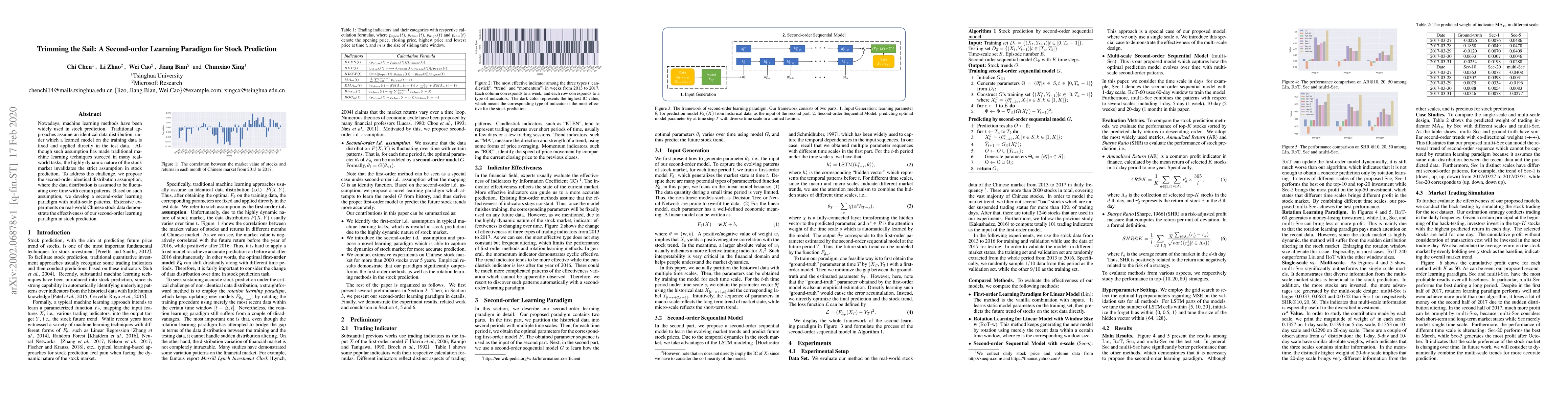 The paper introduces a new learning paradigm for stock prediction, called 'second-order learning,' which accounts for the stock market's dynamic nature by assuming fluctuating data distribution patterns. Experiments on Chinese stock data show the effectiveness of this approach.