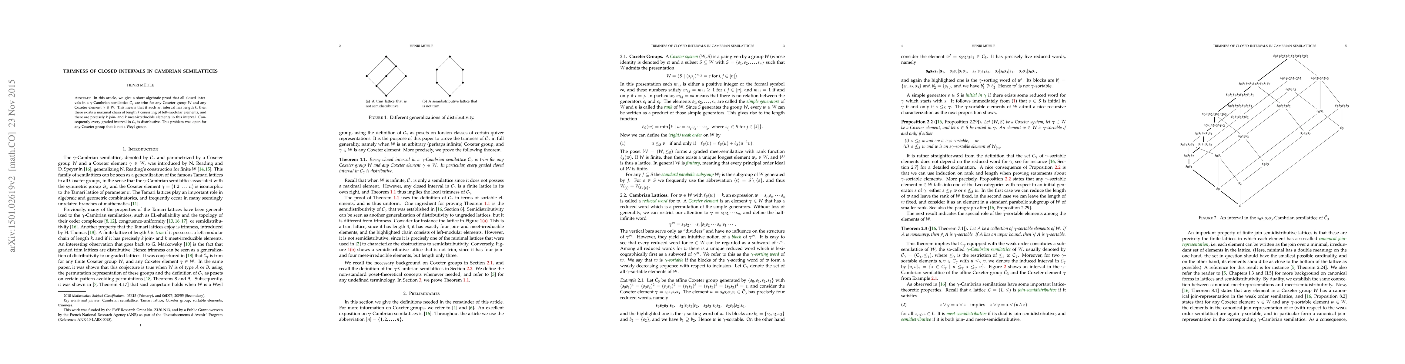 In this article, we give a short algebraic proof that all closed intervals in a $\gamma$-Cambrian semilattice $\mathcal{C}_{\gamma}$ are trim for any Coxeter group $W$ and any Coxeter element $\gamma\in W$. This means that if such an interval has length $k$, then there exists a maximal chain of length $k$ consisting of left-modular elements, and there are precisely $k$ join- and $k$ meet-irreducible elements in this interval. Consequently every graded interval in $\mathcal{C}_{\gamma}$ is distributive. This problem was open for any Coxeter group that is not a Weyl group.