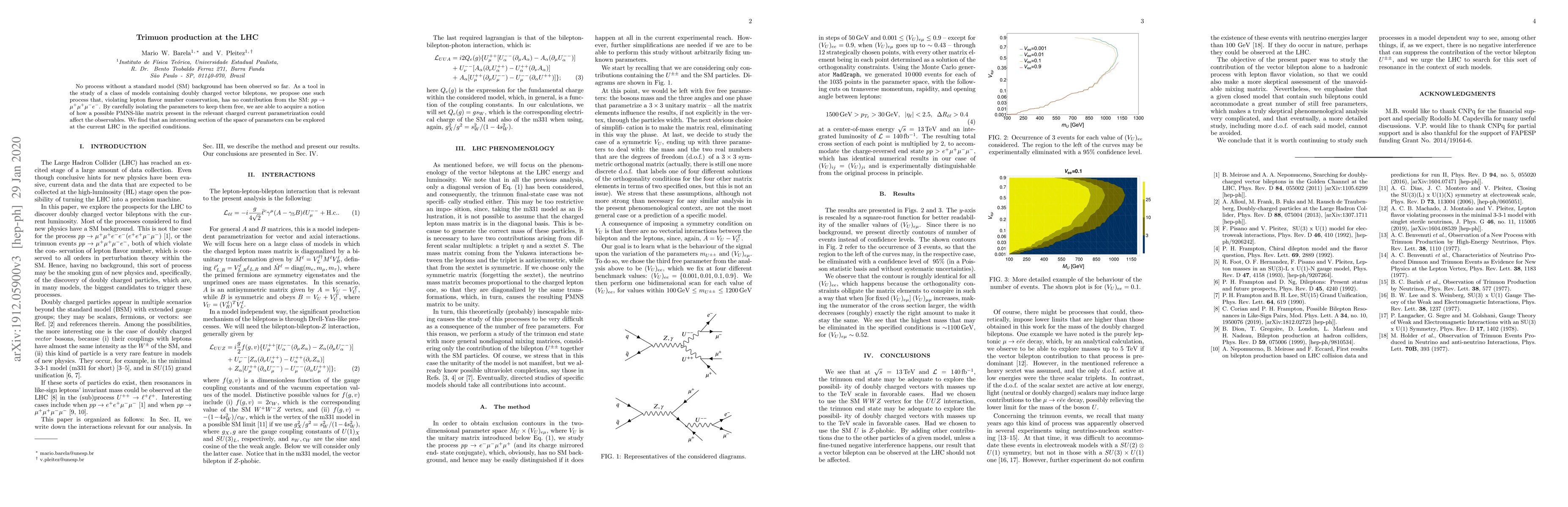 No process without a standard model (SM) background has been observed so far. As a tool in the study of a class of models containing doubly charged vector bileptons, we propose one such process that, violating lepton flavor number conservation, has no contribution from the SM: $pp\to \mu^+\mu^+\mu^- e^-$. By carefully isolating the parameters to keep them free, we are able to acquire a notion of how a possible PMNS-like matrix present in the relevant charged current parametrization could affect the observables. We find that an interesting section of the space of parameters can be explored at the current LHC in the specified conditions.