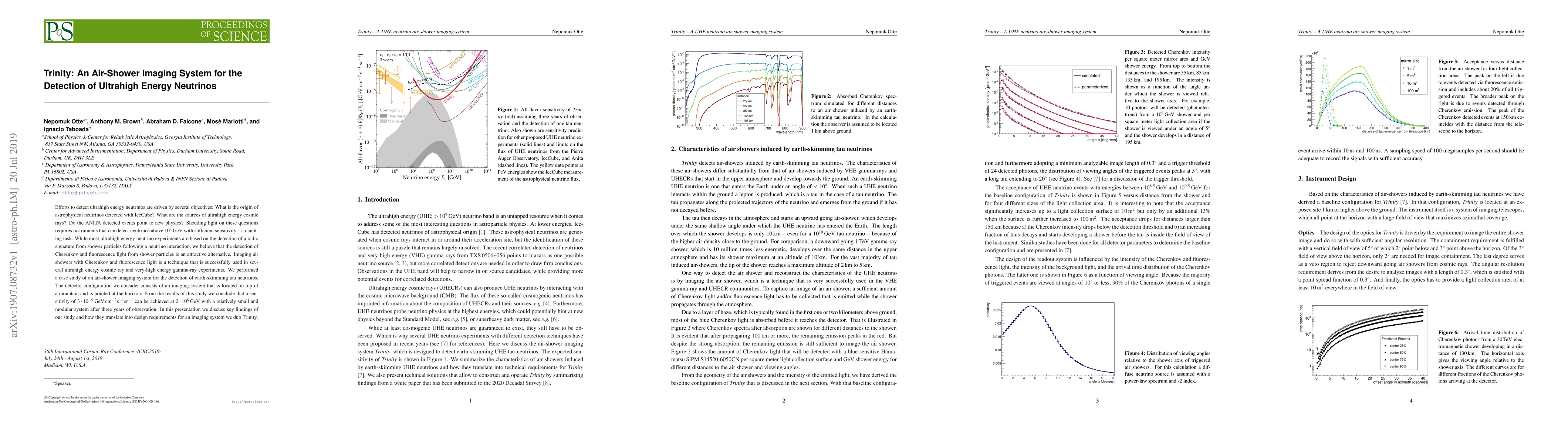 Efforts to detect ultrahigh energy neutrinos are driven by several objectives: What is the origin of astrophysical neutrinos detected with IceCube? What are the sources of ultrahigh energy cosmic rays? Do the ANITA detected events point to new physics? Shedding light on these questions requires instruments that can detect neutrinos above $10^7$ GeV with sufficient sensitivity - a daunting task. While most ultrahigh energy neutrino experiments are based on the detection of a radio signature from shower particles following a neutrino interaction, we believe that the detection of Cherenkov and fluorescence light from shower particles is an attractive alternative. Imaging air showers with Cherenkov and fluorescence light is a technique that is successfully used in several ultrahigh energy cosmic ray and very-high energy gamma-ray experiments. We performed a case study of an air-shower imaging system for the detection of earth-skimming tau neutrinos. The detector configuration we consider consists of an imaging system that is located on top of a mountain and is pointed at the horizon. From the results of this study we conclude that a sensitivity of $3\cdot10^{-9}$ GeV cm$^{-2}$s$^{-1}$sr$^{-1}$ can be achieved at $2\cdot10^8$ GeV with a relatively small and modular system after three years of observation. In this presentation we discuss key findings of our study and how they translate into design requirements for an imaging system we dub Trinity.
