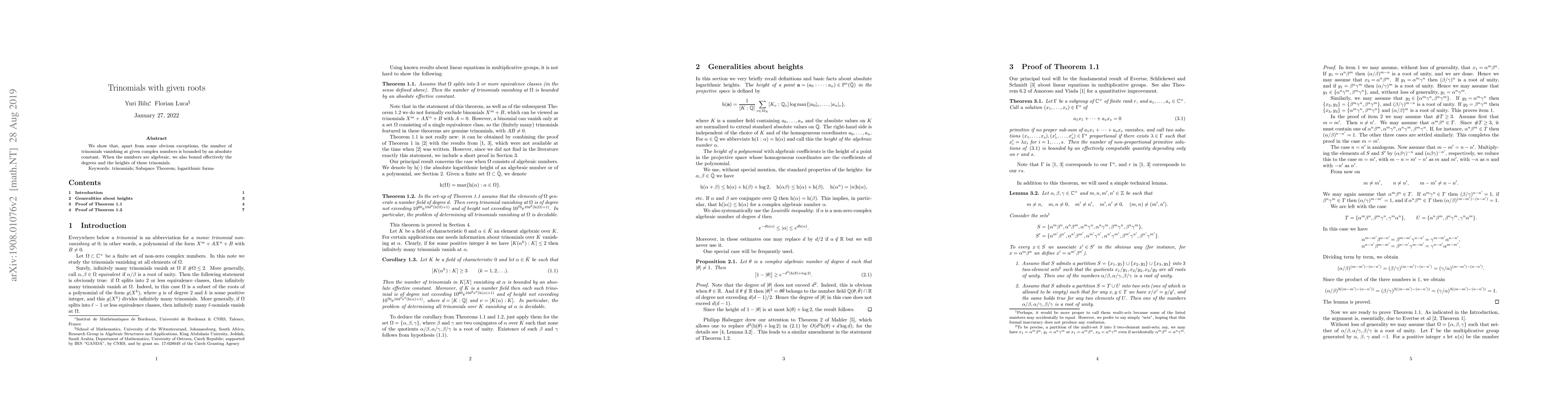 The paper presents a novel approach using linear equations in multiplicative groups to bound trinomials with given roots, along with effectively computable degree and height bounds for algebraic roots.
