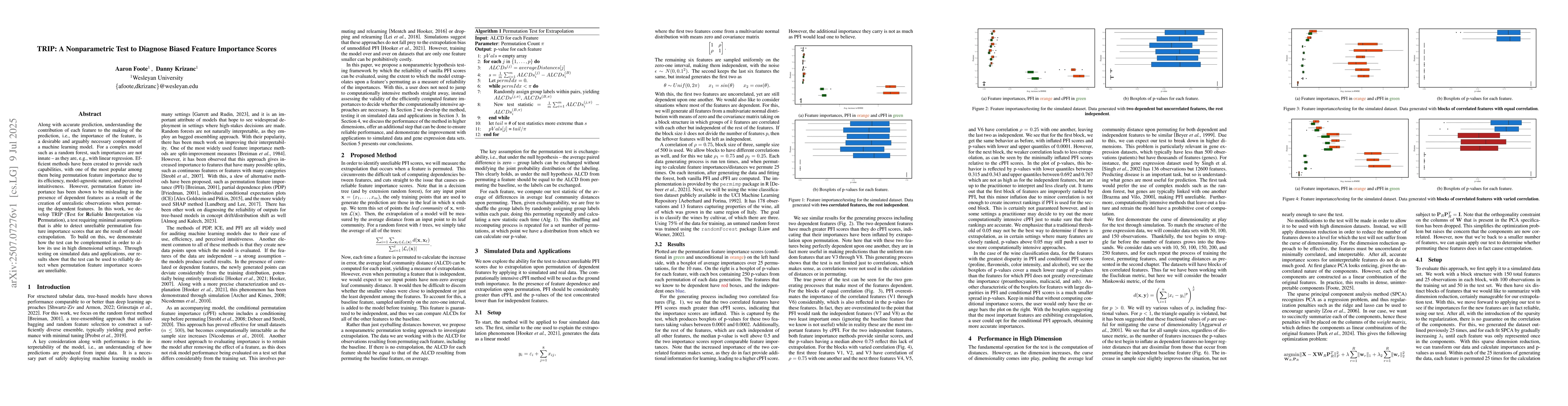 Along with accurate prediction, understanding the contribution of each feature to the making of the prediction, i.e., the importance of the feature, is a desirable and arguably necessary component of a machine learning model. For a complex model such as a random forest, such importances are not innate -- as they are, e.g., with linear regression. Efficient methods have been created to provide such capabilities, with one of the most popular among them being permutation feature importance due to its efficiency, model-agnostic nature, and perceived intuitiveness. However, permutation feature importance has been shown to be misleading in the presence of dependent features as a result of the creation of unrealistic observations when permuting the dependent features. In this work, we develop TRIP (Test for Reliable Interpretation via Permutation), a test requiring minimal assumptions that is able to detect unreliable permutation feature importance scores that are the result of model extrapolation. To build on this, we demonstrate how the test can be complemented in order to allow its use in high dimensional settings. Through testing on simulated data and applications, our results show that the test can be used to reliably detect when permutation feature importance scores are unreliable.