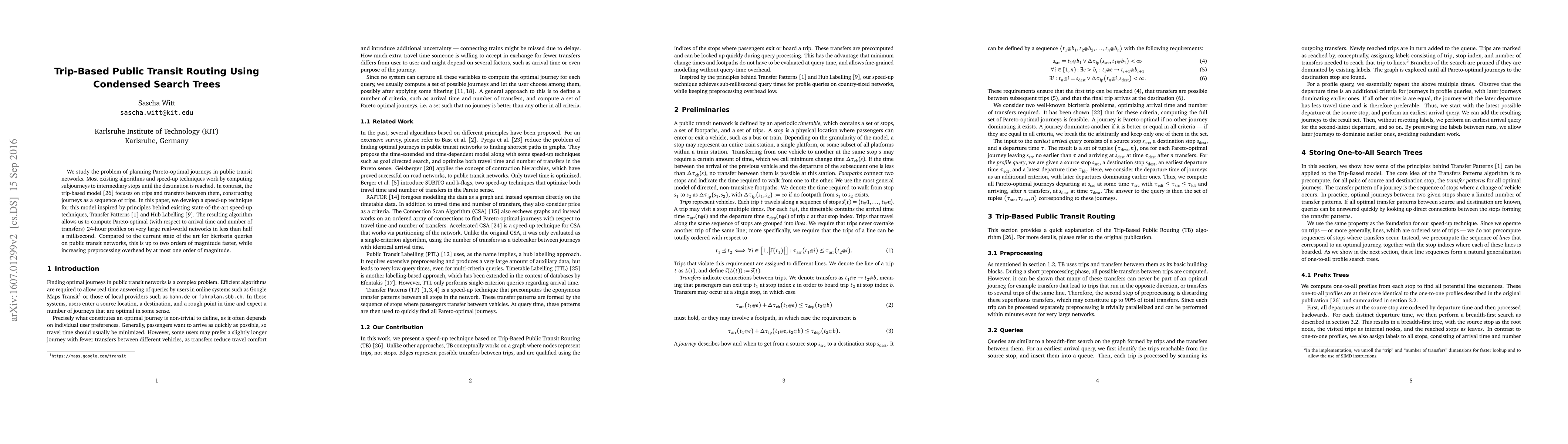 This paper introduces a novel algorithm for planning Pareto-optimal journeys in public transit networks using a trip-based model, achieving up to two orders of magnitude faster computation times compared to existing methods, while maintaining efficiency in preprocessing overhead.